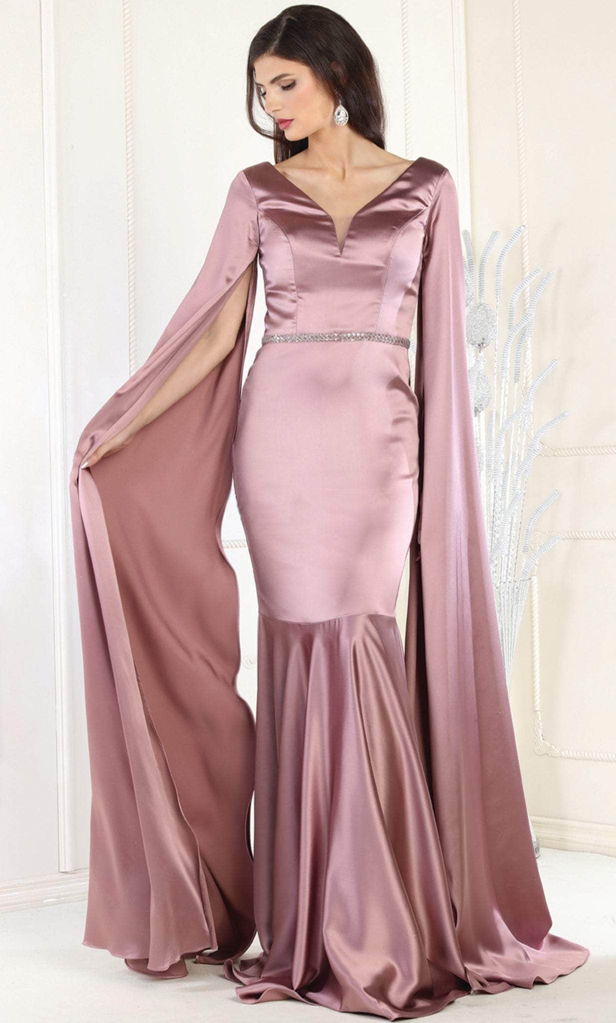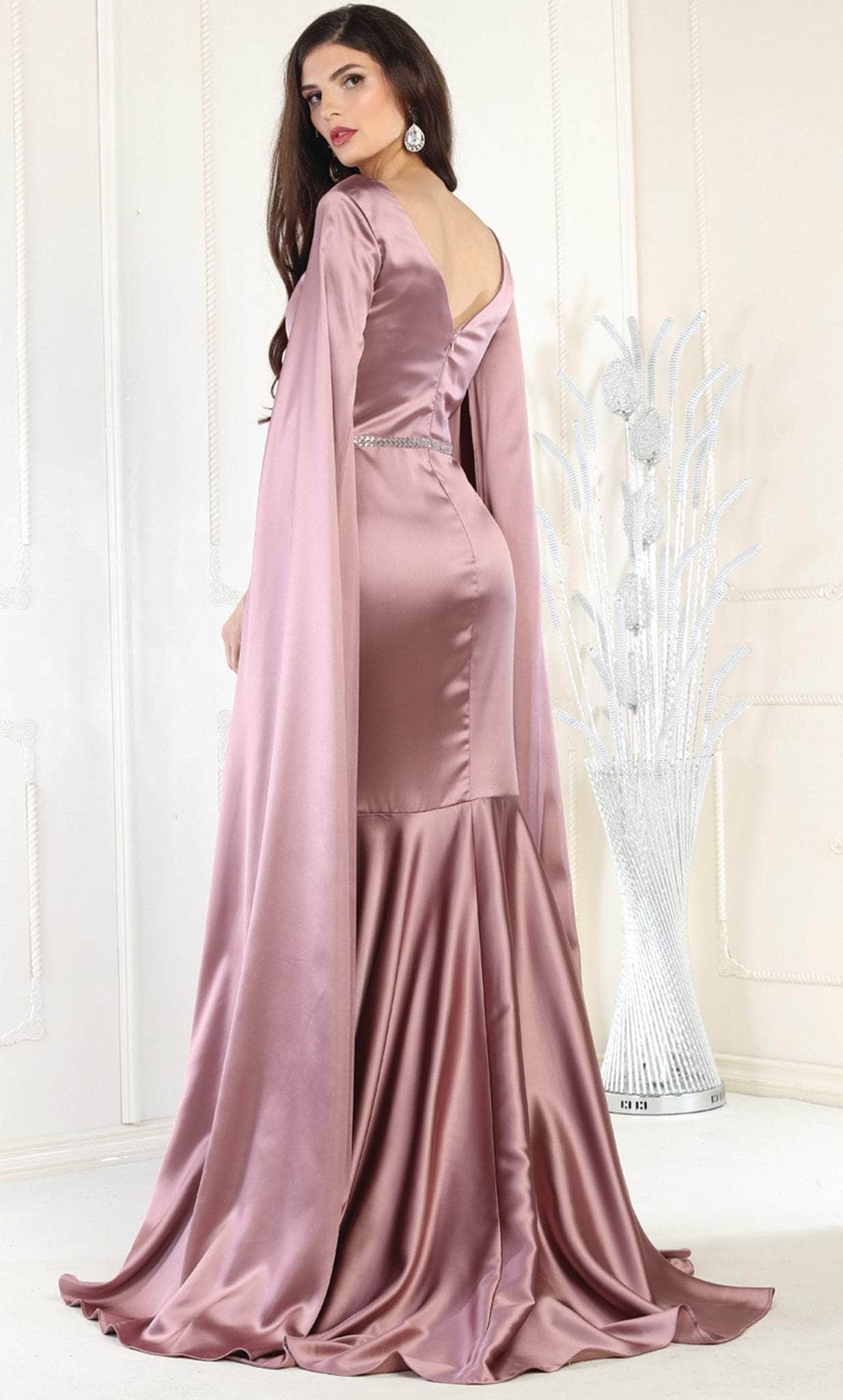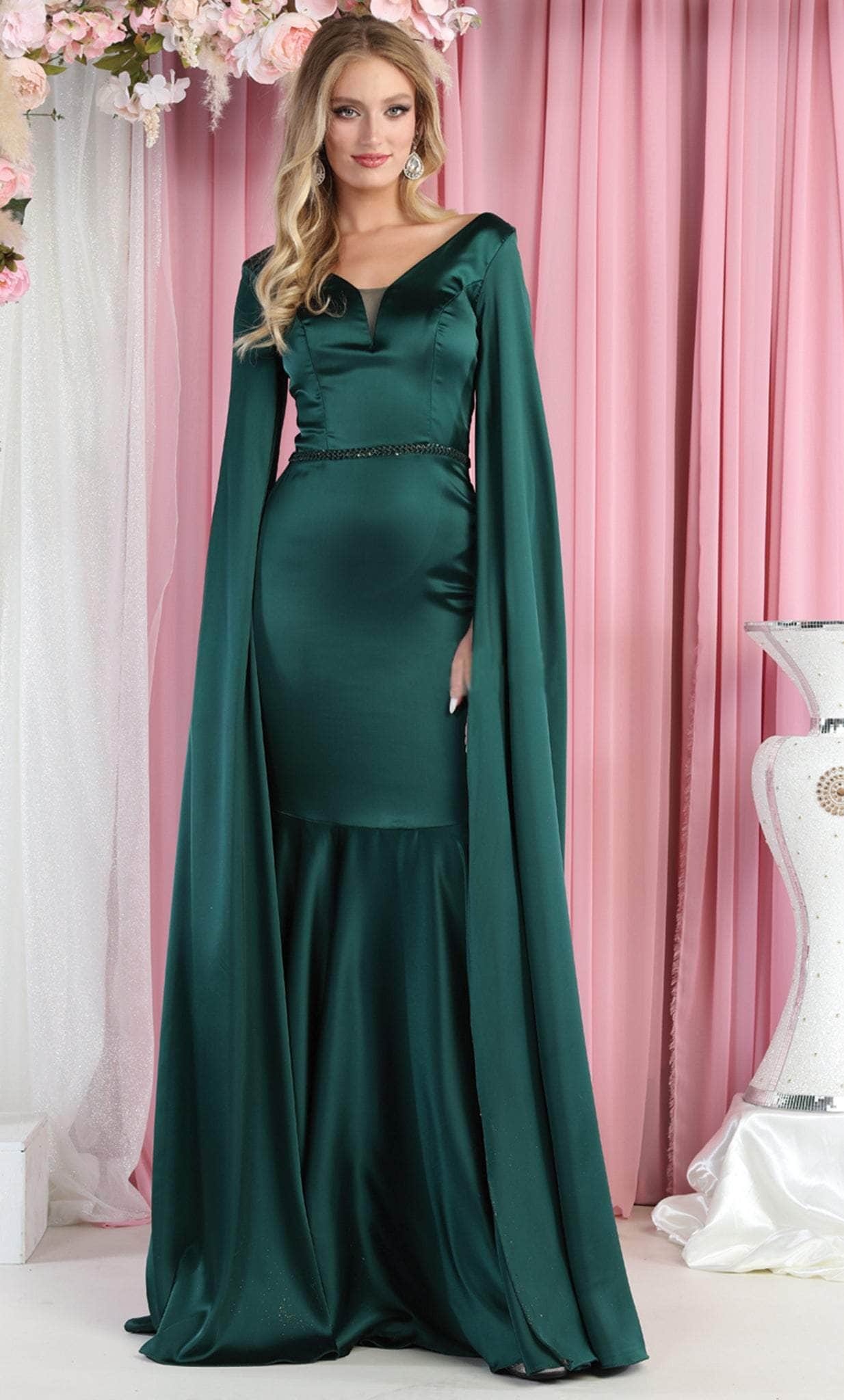 Embellish yourself for the momentous occasion with this May Queen RQ7961 evening gown, perfect for bringing out your inner glow. This dress features floor-length cape sleeves and a V neckline with an illusion inset. The skirt has a floor-length sheath silhouette and is finished off with a sweep train. Has a jewel embellished waistband and is finished off with a V back. Be beguiled by the captivating beauty of this May Queen RQ7961 masterpiece. Models are wearing the Black, Hunter Green, and Mauve colors.