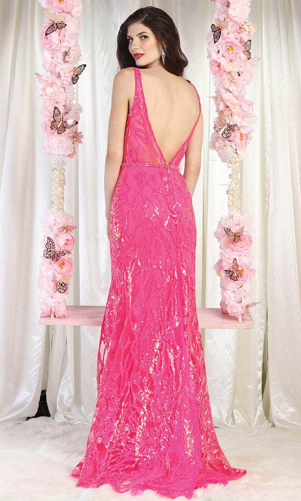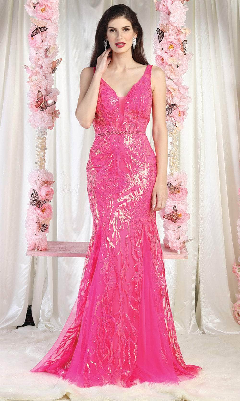 Expect to be turning heads as you walk into your special event wearing this creatively romantic May Queen RQ8011. You are going to be looking more than gorgeous with this dress' intricate sequin-detailing that adorns its sleeveless and plunging-necklined bodice. The skirt that drapes down from a normal waistline is also adorned with sequin-patterns, sewn along a fully-lined tulle fabric. This sheath-silhouette gown is the perfect prom dress for the girl who want to stand out from the crowd while looking glamorous. Models are wearing Dustyblue and Fuchsia colors.