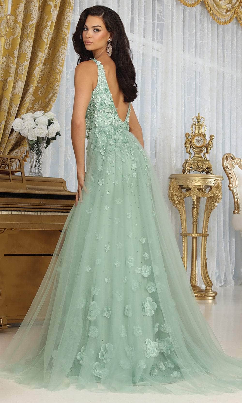 May Queen RQ8031 - V-Neck 3D Floral Appliqued Prom Gown
