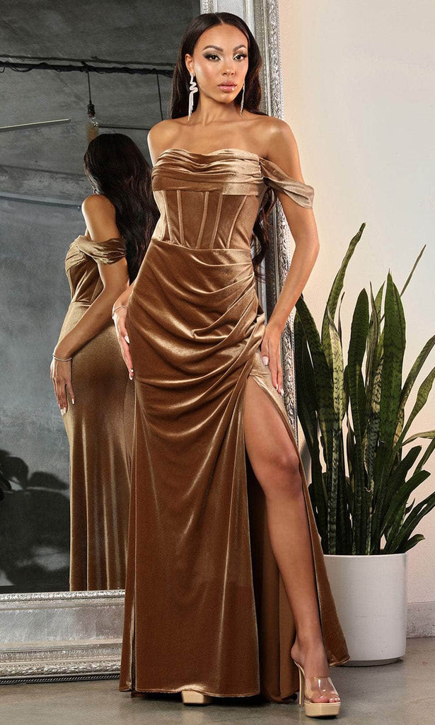May Queen RQ8069 - Off Shoulder Velvet Prom Dress