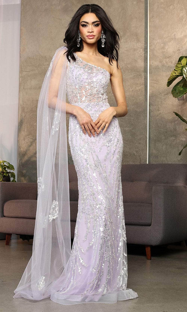 As you walk wearing this May Queen RQ8075 masterpiece, everyone will stop to stare at you. This beautiful gown features a trendy one-shoulder design that consists of an illusion top bodice, asymmetric neckline, and long cape sleeve. It is fully adorned with intricate sequins and beadwork, ensuring you glisten throughout the night. The skirt offers a sheath silhouette that hugs your curves, completed in a horsehair hem and sweeping train. Sizzle and shine with this May Queen RQ8075 creation. Models are wearing Lilac, and Sky-Blue colors.