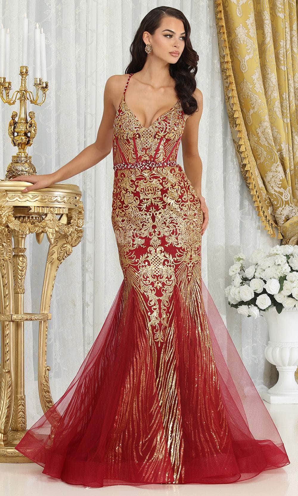 May Queen RQ8079 - V-Neck Sexy Strappy Back Prom Gown