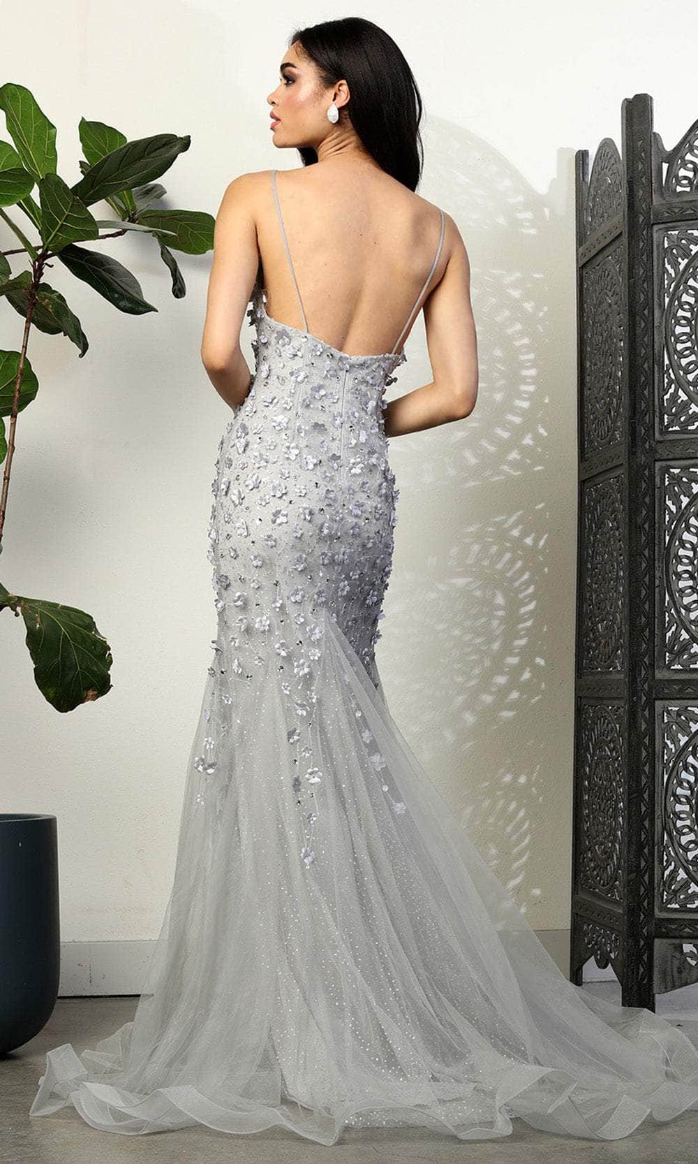 Be the ultimate belle of the party in this May Queen RQ8089 masterpiece. Captivate all eyes in this lovely sleeveless gown that is embellished with 3D floral appliques and shimmering beads. It features delicate spaghetti straps that highlight your shoulders, while the tantalizing deep v-neckline is perfectly coupled with a mid-open back. The skirt draws attention to your hourglass curves in a mermaid silhouette, exquisitely enhanced by the horsehair hem and sweeping train. Go girl and celebrate! Have fun in this May Queen RQ8089 gown! Models are wearing Champagne, and Silver colors.