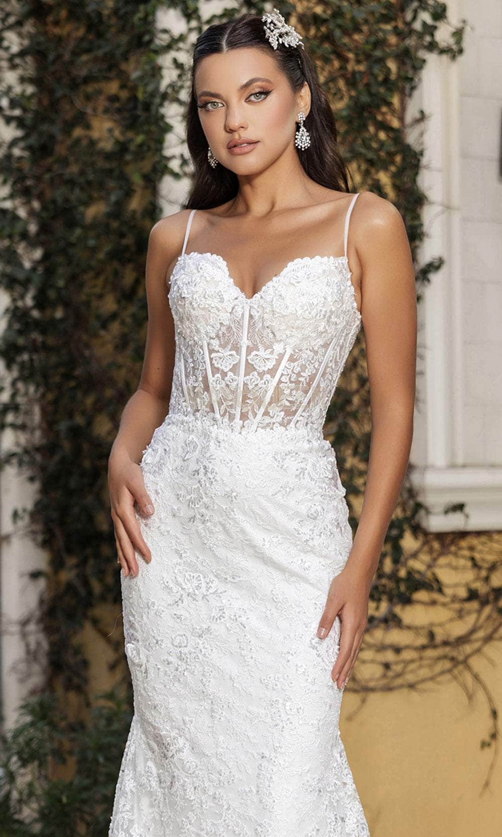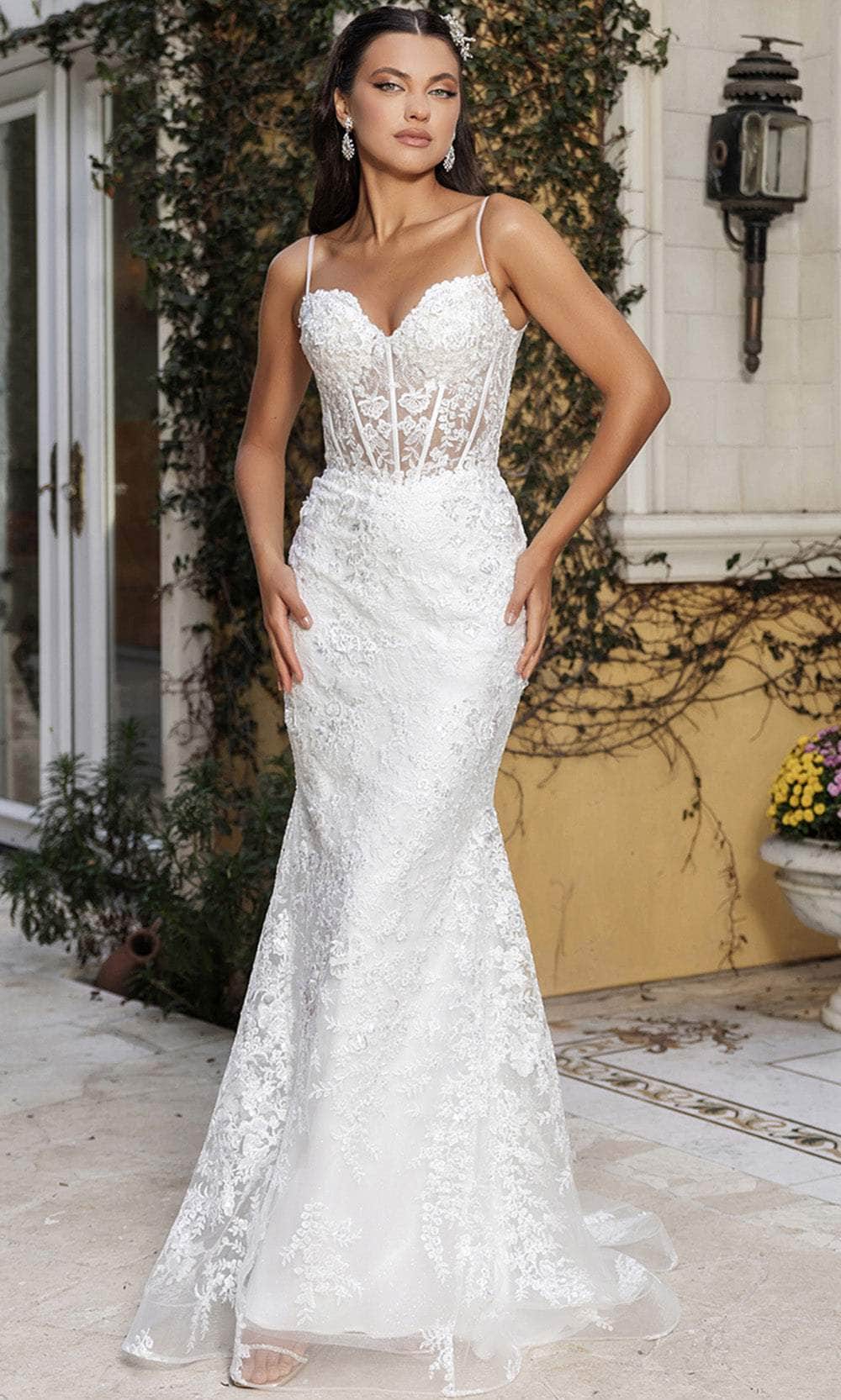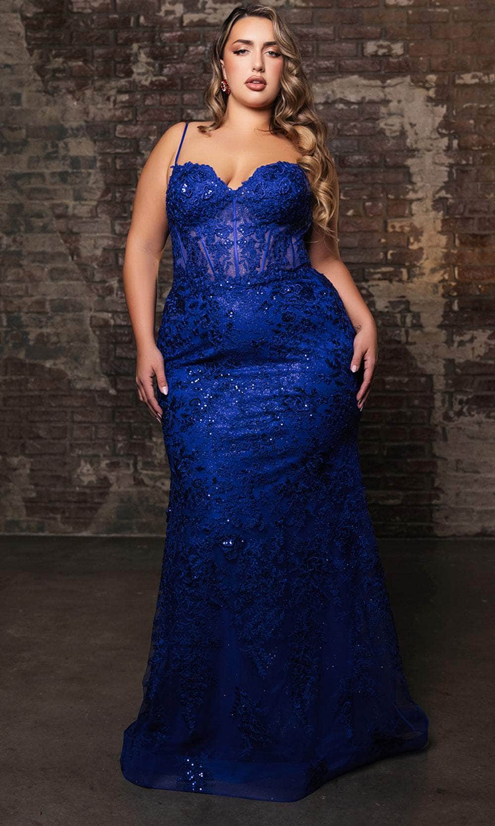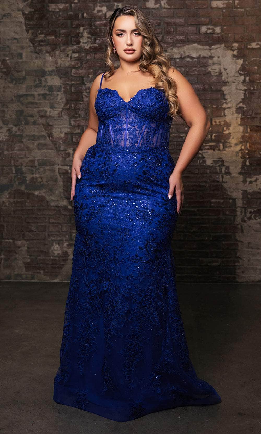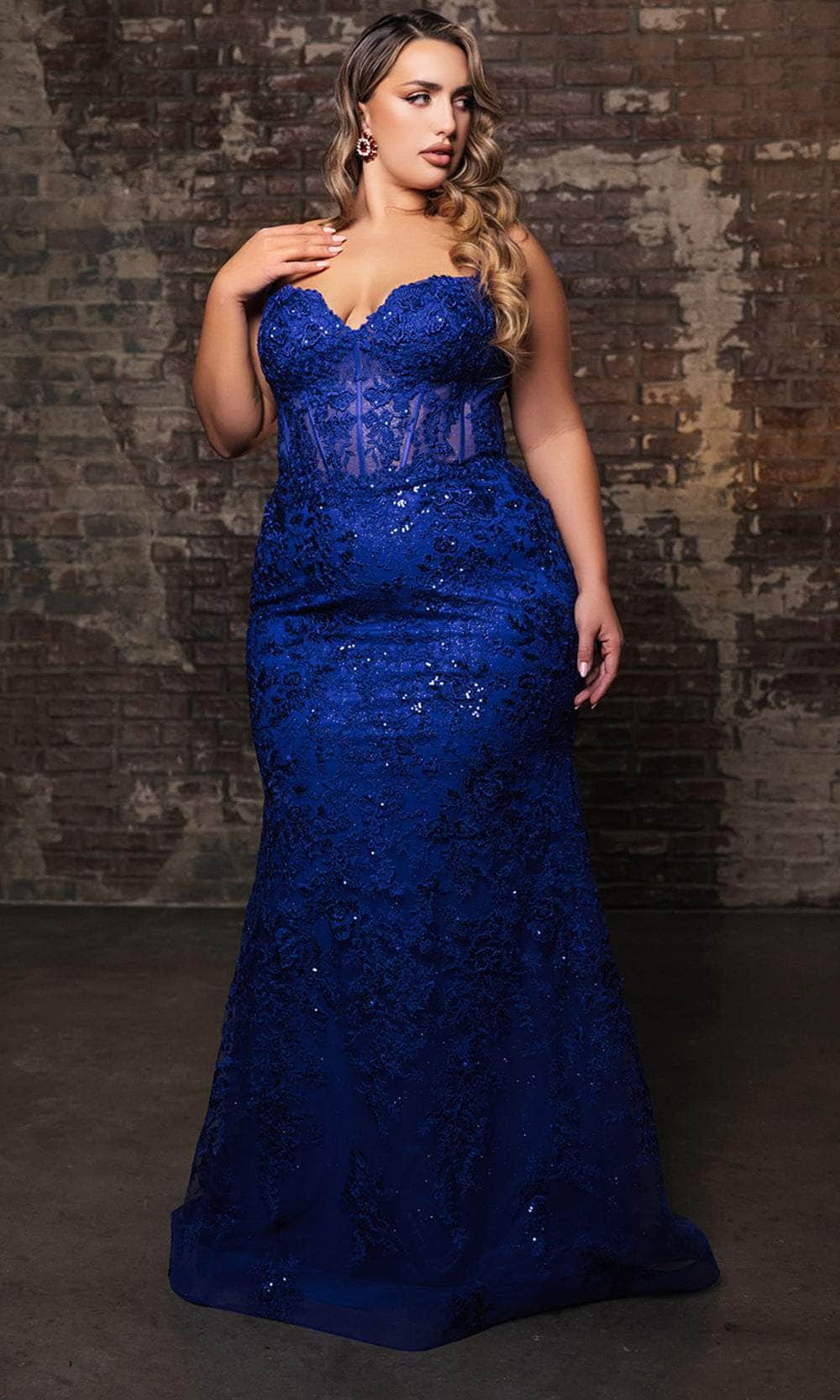 Exude classic charm with a modern twist in the May Queen RQ8138. This sleeveless gown features a sheer corset bodice adorned with detailed embroidery and a sweetheart neckline. A concealed back zipper ensures a smooth fit, while the sheath skirt glides to the floor and finishes with a refined train. Sophisticated and stylish, this gown is ideal for weddings, galas, or evening soirees. Models are wearing Ivory, Sage, and Royal.