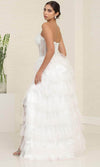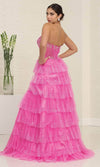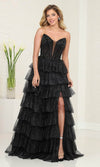 Dazzle in the May Queen RQ8142 prom dress, a stunning gown designed for a night to remember. Expert tailoring creates a head-turning silhouette embellished with cascading beads that shimmer with every move. The strapless sweetheart neckline showcases your shoulders and complements the structured bodice, featuring strategically placed corset boning for a cinched waist. The mid-rise back adds a touch of elegance. The fantastic dress flows into a dramatic tiered A-line skirt with a daring high slit, cascading into a graceful train. This May Queen RQ8142 masterpiece guarantees you'll be the center of attention all night long. Models are wearing the Black, Fuchsia, and White colors.