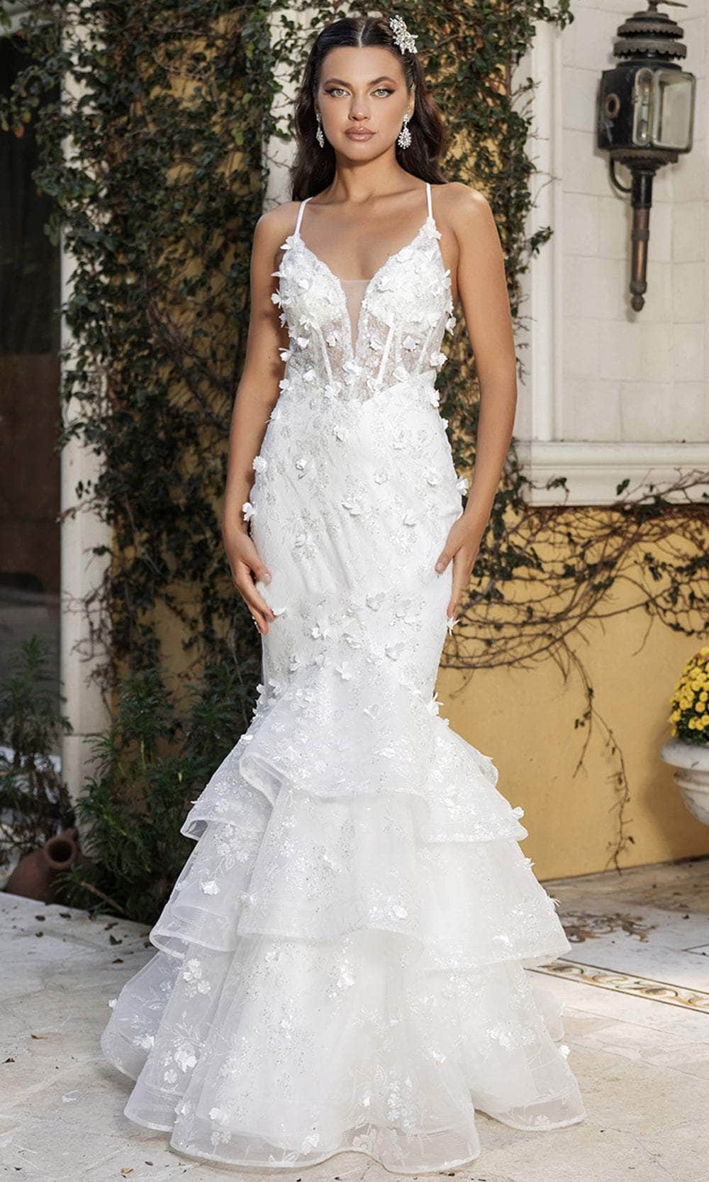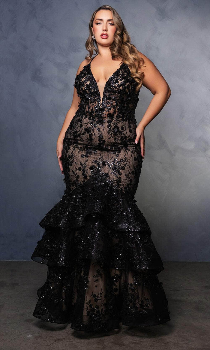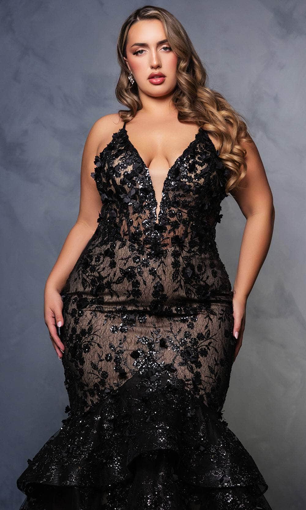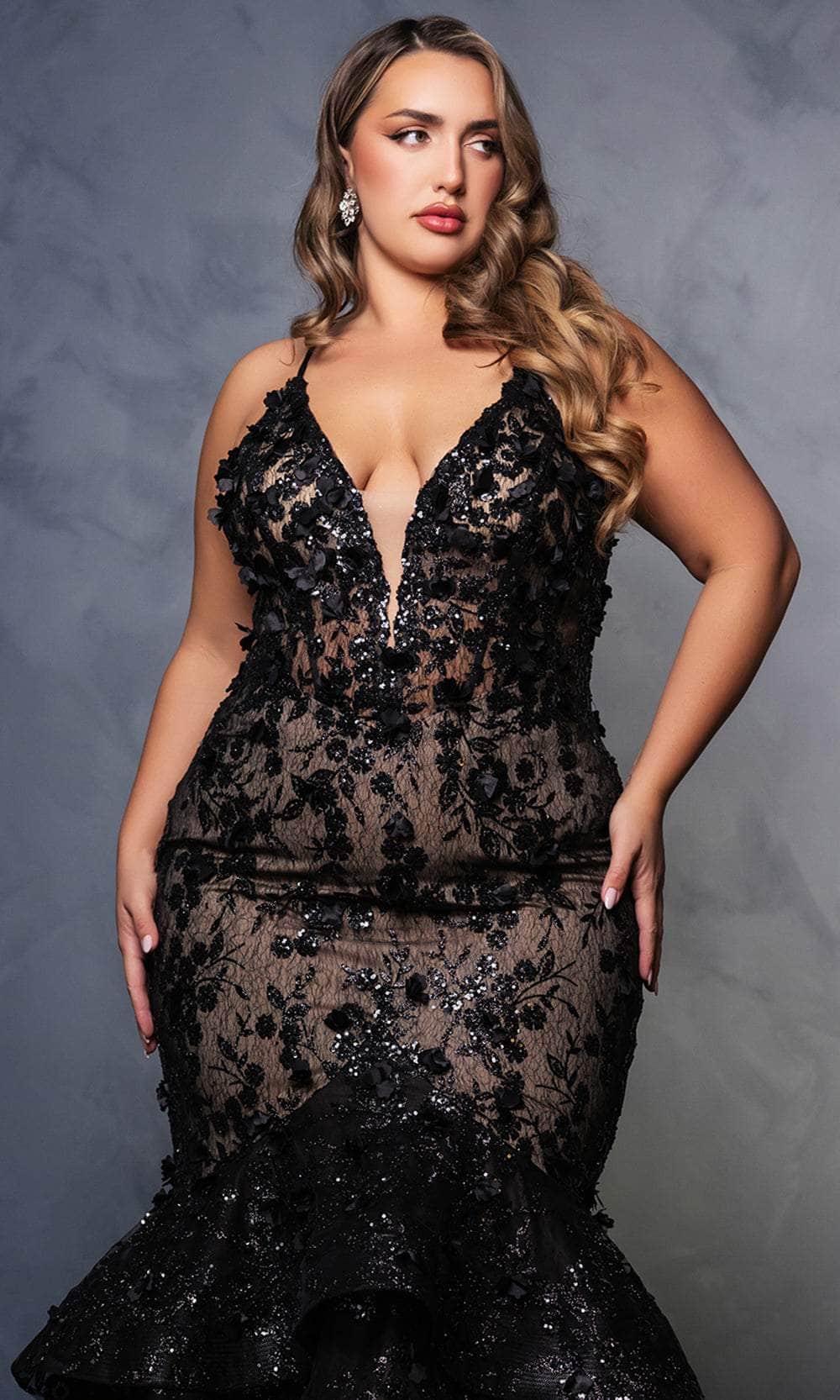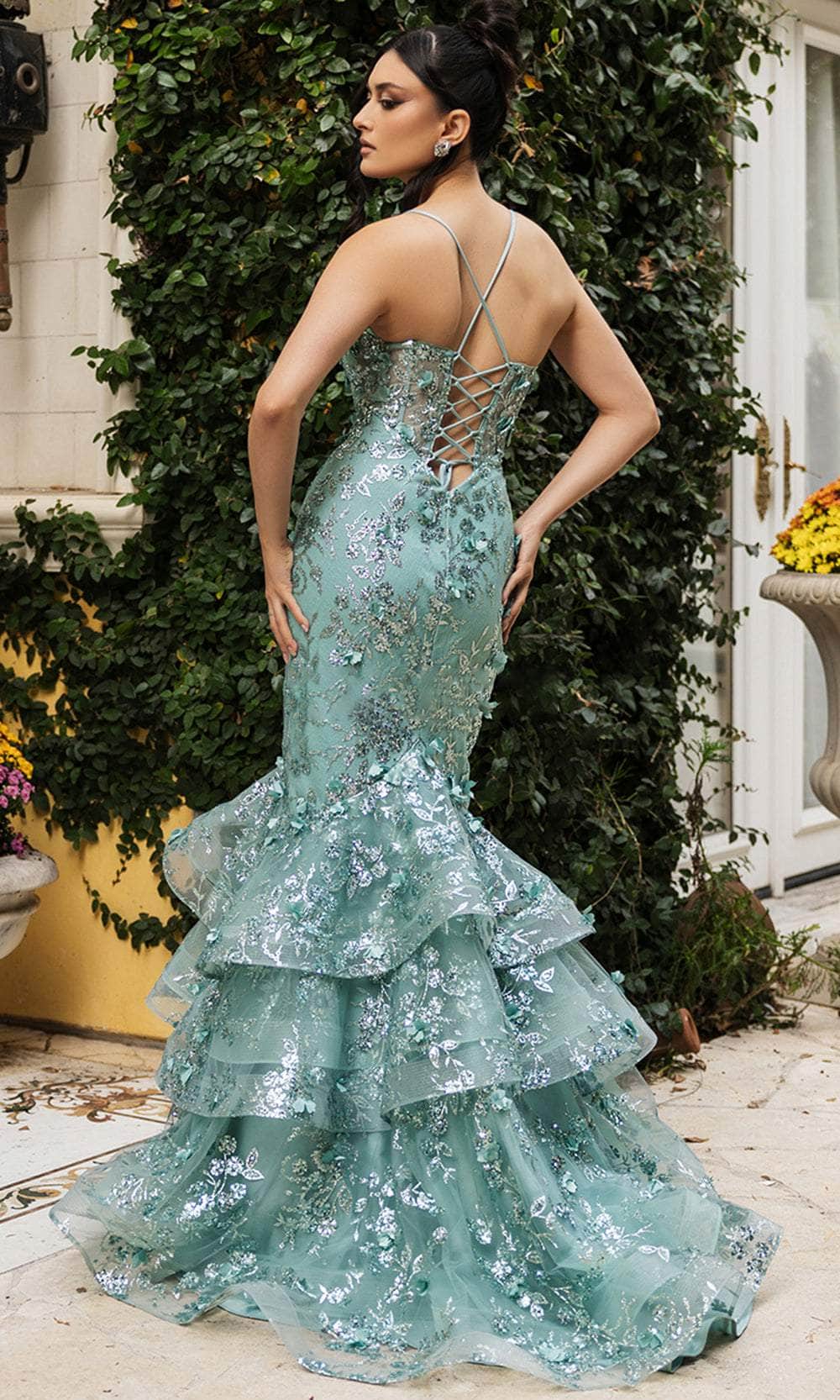 Look jaw dropping in this dramatic May Queen RQ8148 evening dress. This dress showcases an alluring plunging V-neckline on a fitted and sleeveless bodice, also featuring spaghetti straps for added support. It also reveals an enticing strappy back, while the floor-length mermaid skirt highlights a mesmerizing ruffled hem. It is also entirely designed with floral applique and embellishments, making this attire look truly dazzling. Wow everyone in this sophisticated May Queen RQ8148 masterpiece. Models are wearing Black/Nude, Hunter Green, Sage, and White colors.