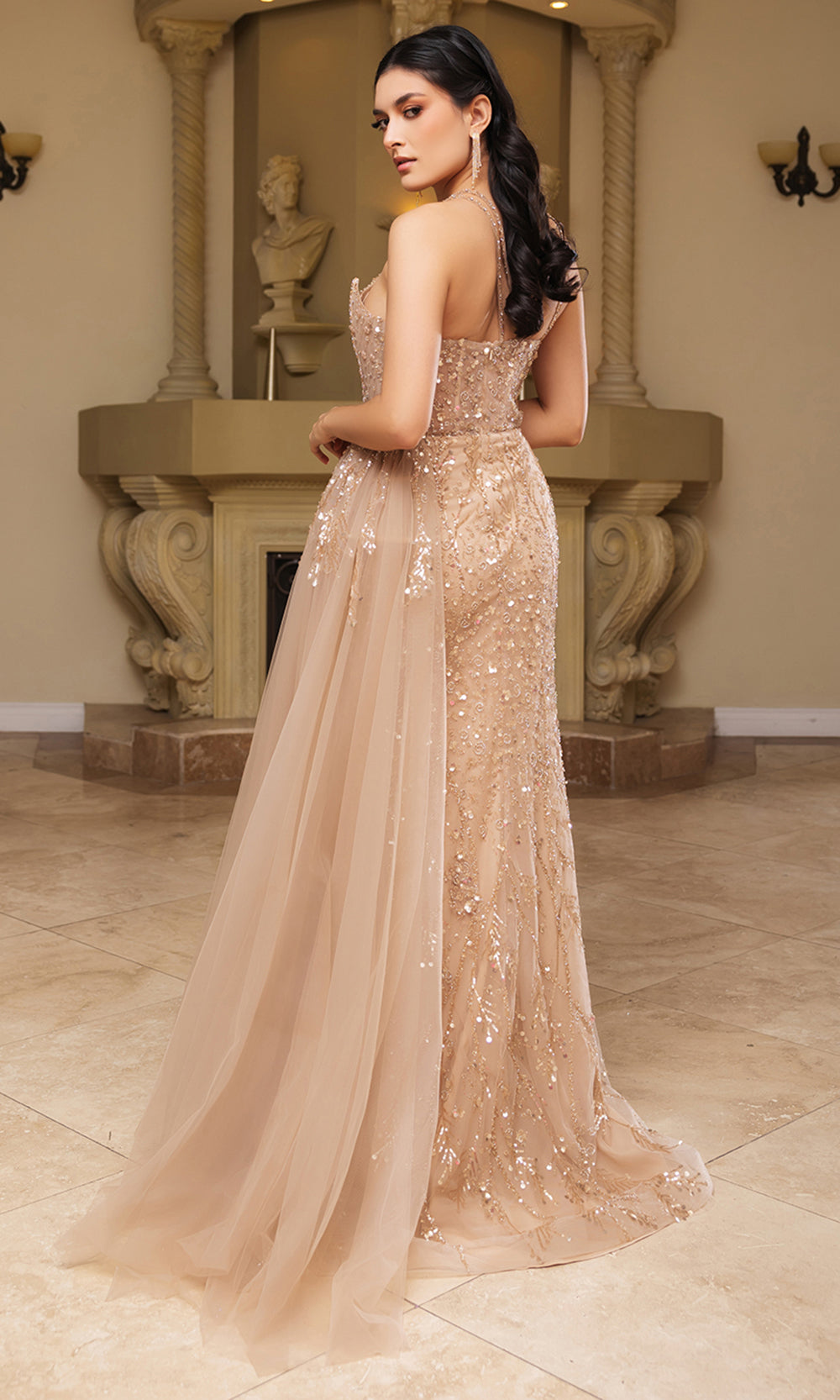 Radiate charm and elegance wearing the May Queen RQ8176 masterpiece. Designed with delicate spaghetti straps and a sweetheart neckline, this dress features a lace applique and fully beaded bodice that sparkles with every step. The sheer drape side sash paired with a thigh-high slit adds layers of graceful sophistication. Finished with a sheath silhouette, this dress is the perfect blend of romance and contemporary glamour. Step out in the May Queen RQ8176 for an unforgettable evening look. Models are wearing Champagne, and Mauve colors.