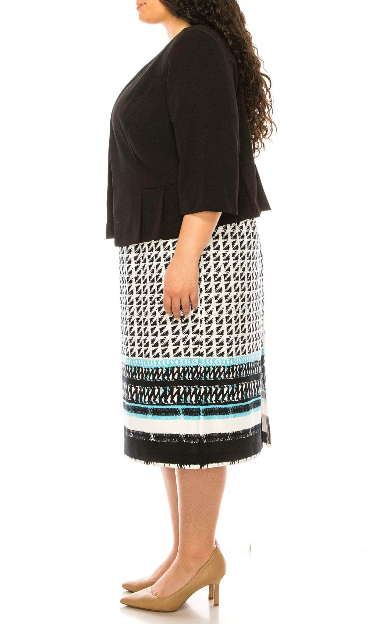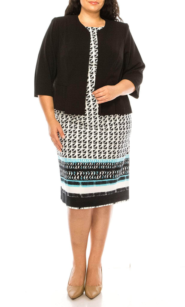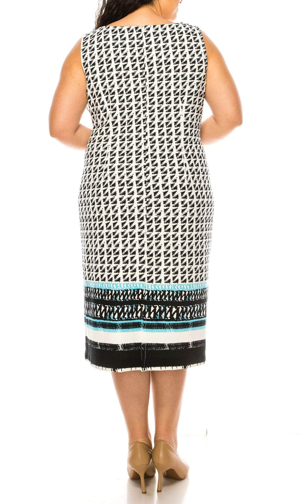 Draw out the princess in you with this Maya Brooke 29479X. features a sleeveless sheath dress in tribal print design with a jacket, straight hemline and a back zipper closure. The neckline is a short straight style that complements the overall design of the dress. The enclosed back adds a touch of elegance and sophistication to the dress, while the crepe material adds a smooth and polished finish. Be fabulous in this Maya Brooke 29479X! Model is wearing Black color.