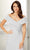 Be ready to catch everyones eyes in this elegant MGNY By Mori Lee 72406 evening dress. This dress highlights an off shoulder neckline supported by cap sleeves in an appliqued and beaded bodice. Having an A-line silhouette, this also shows a V-back with back zipper closure to complete the look. This MGNY By Mori Lee creation is simply perfect for your next formal party! Model is wearing Silver color