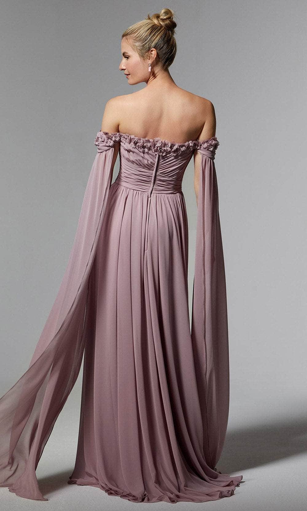 Drape yourself in elegance with the MGNY by Mori Lee 72902 gown, a vision of sophistication. The asymmetrically draped bodice showcases a straight neckline and off-the-shoulder sleeves adorned with stunning crystal-beaded, three-dimensional flowers. The A-line skirt gracefully flows, accompanied by a sweep train for added drama. Detachable streamers bring an extra touch of flair to the chiffon dress, allowing you to customize your look. A matching stole is included, completing this ensemble with a perfect blend of timeless refinement and contemporary allure. Step into the spotlight with this MGNY by Mori Lee 72902 masterpiece that promises to captivate at any special occasion. Models are wearing the Desert Rose and Sapphire colors.