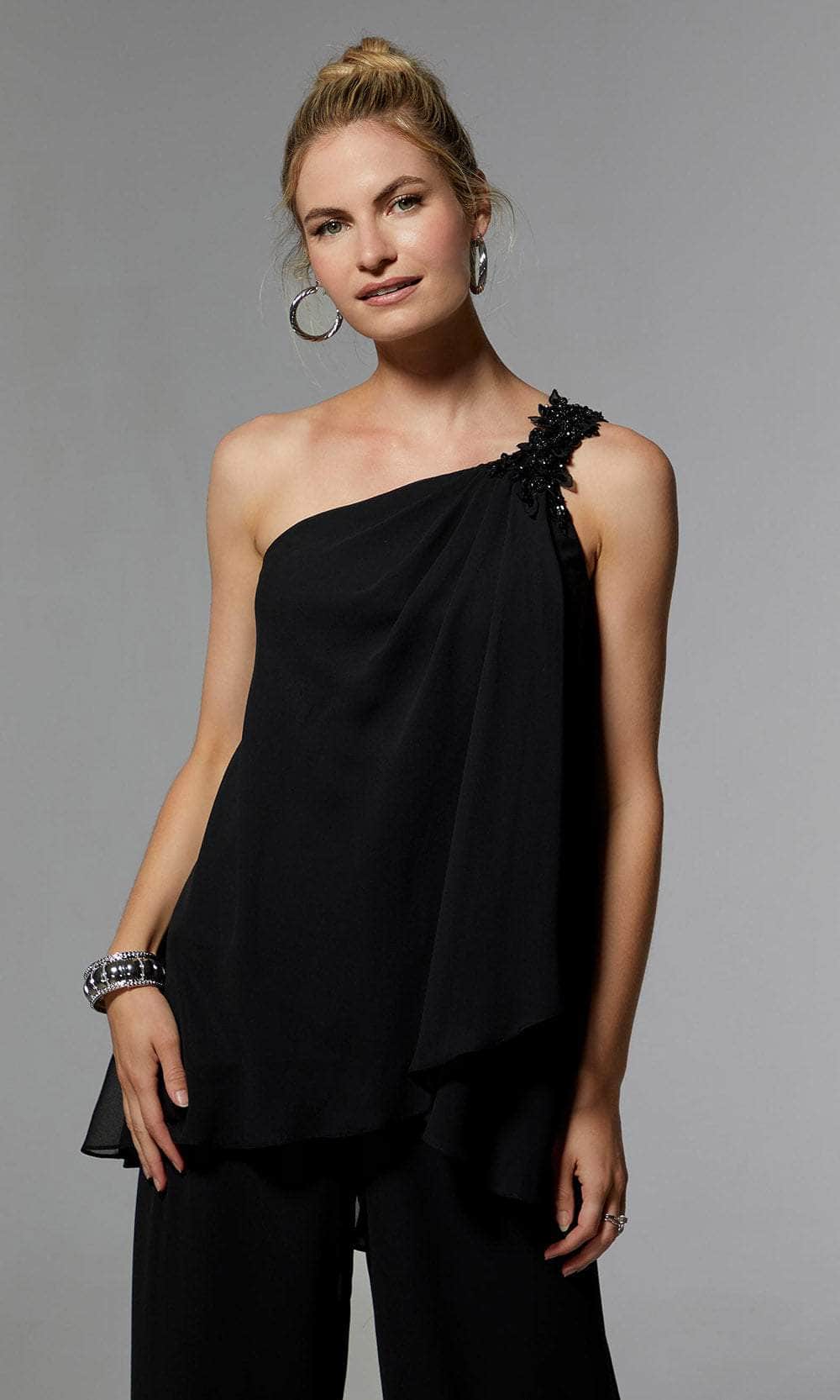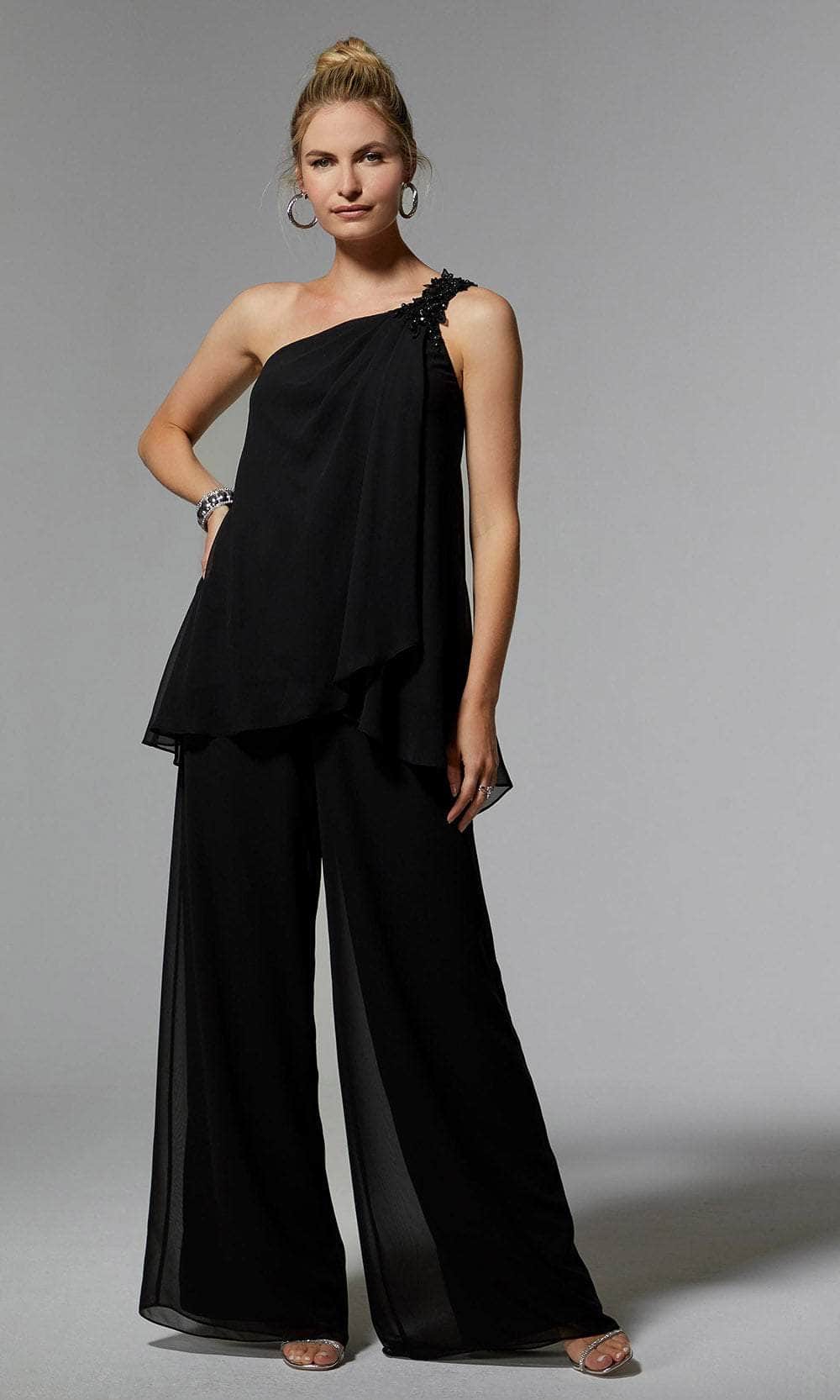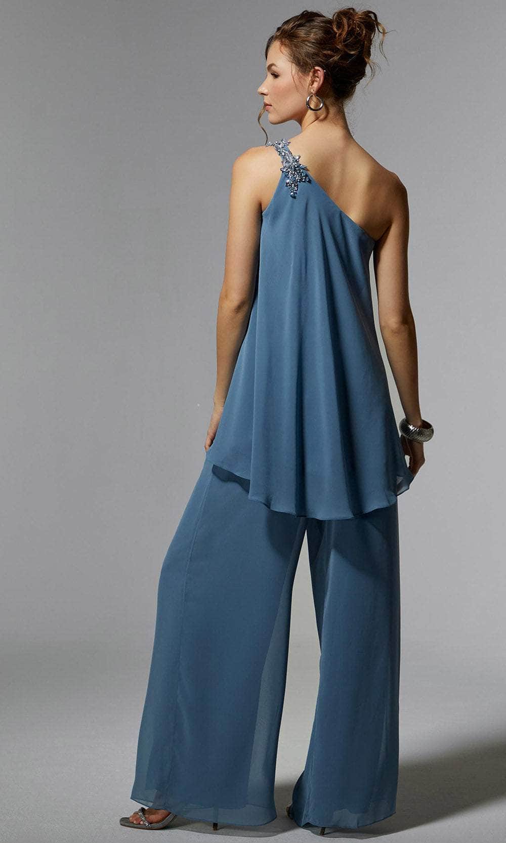 The MGNY by Mori Lee 72912 ensemble is a versatile two-piece set that exudes understated elegance. The floaty asymmetric chiffon top boasts a cool one-shoulder neckline adorned with beautiful beaded appliqués, adding a touch of sophistication to the outfit. The palazzo pants are crafted from airy chiffon, creating a chic and comfortable look that billows gracefully around you. This ensemble is thoughtfully completed with a matching stole, offering a cohesive and stylish addition to the overall outfit. Radiate confidence and poise in this MGNY by Mori Lee 72912 ensemble, tailored to perfection for a flawless silhouette. Models are wearing the Black and Slate colors.