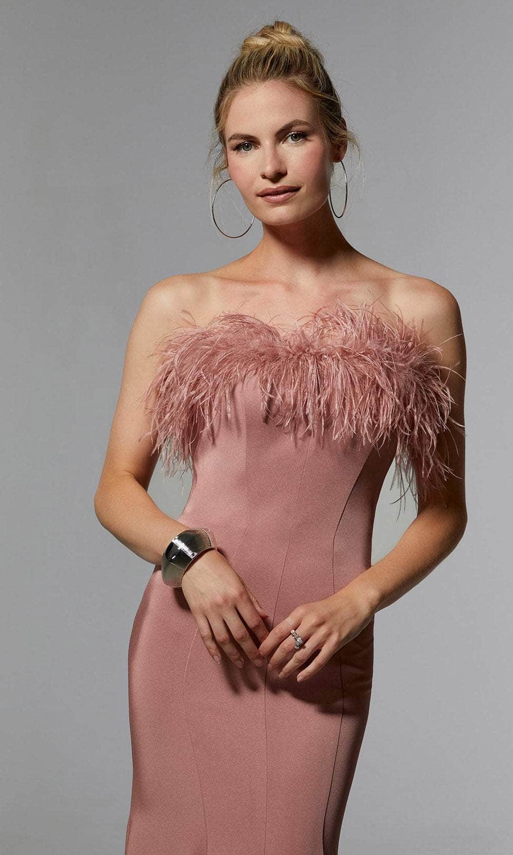 Leave a lasting impression with the MGNY by Mori Lee 72923 creation, a gown designed to mesmerize. This evening gown features a simple sheath silhouette characterized by well-defined seams that create clean and tailored lines. The modern straight strapless neckline adds a touch of drama, amplified by feathered trim, lending an air of glamour to the gown. The ensemble elegantly concludes with a sweep train. Make the MGNY by Mori Lee 72923 creation a sophisticated choice for those seeking a memorable and refined appearance for their special occasion. Models are wearing the Black and Dusty Rose colors.