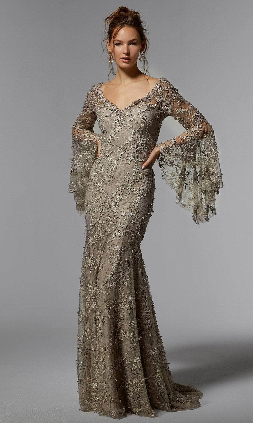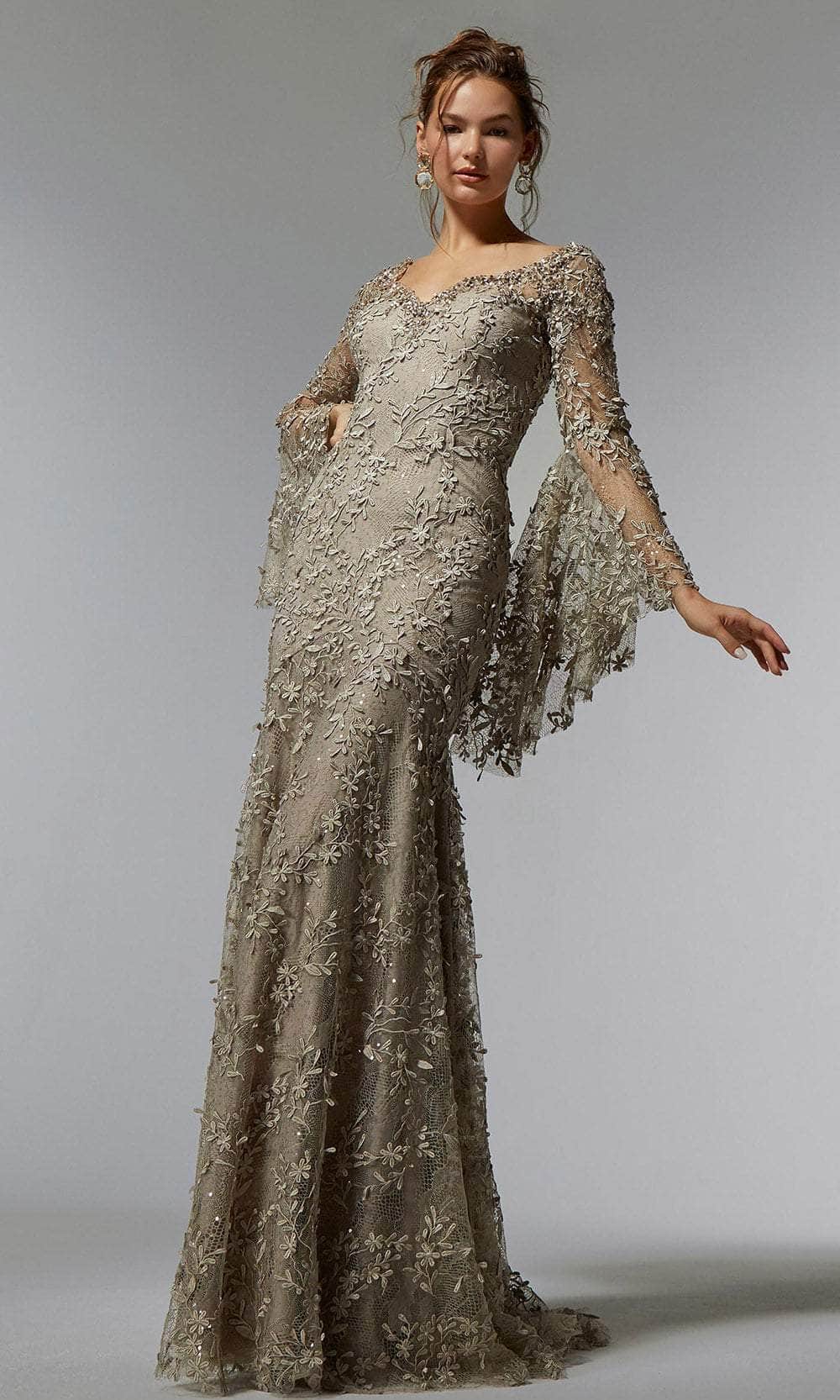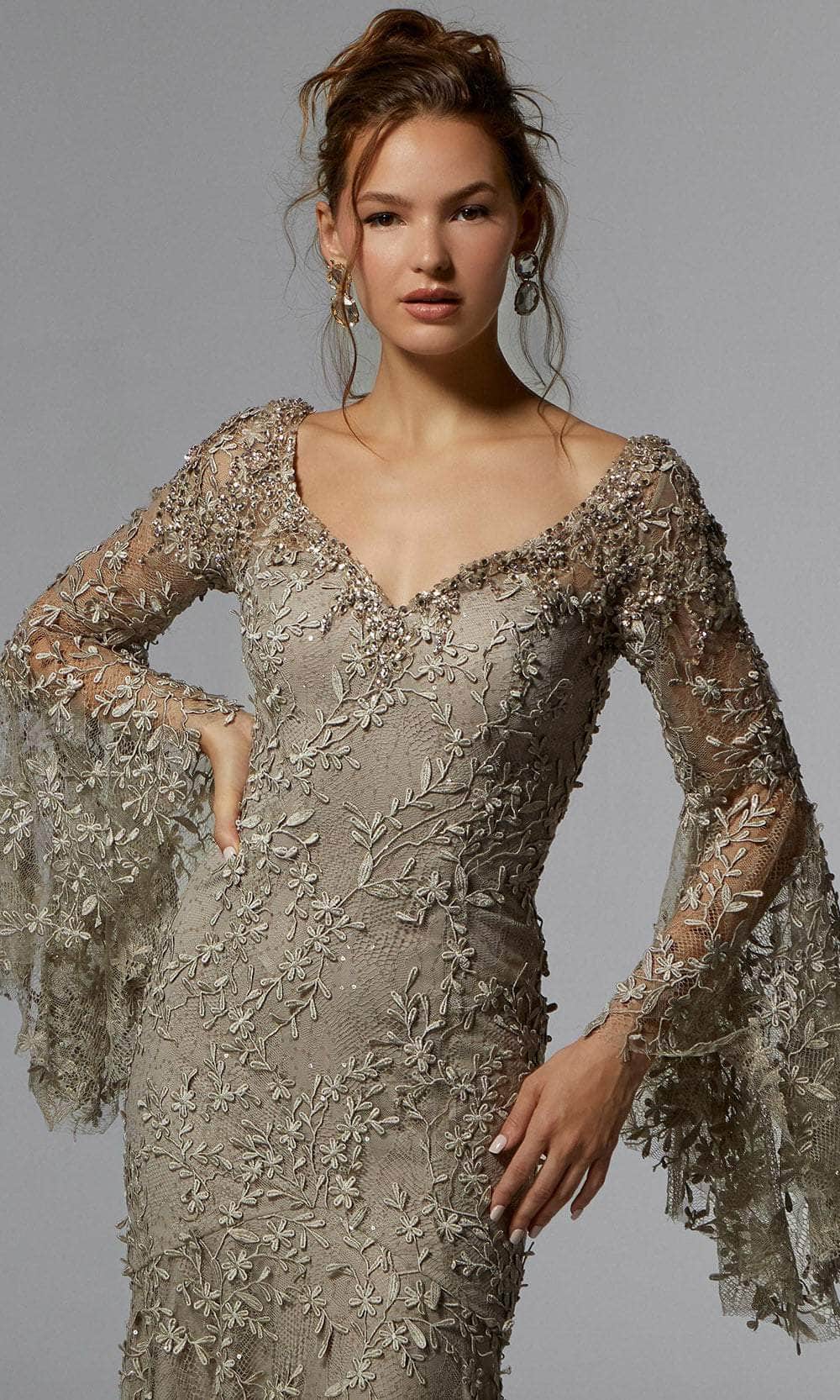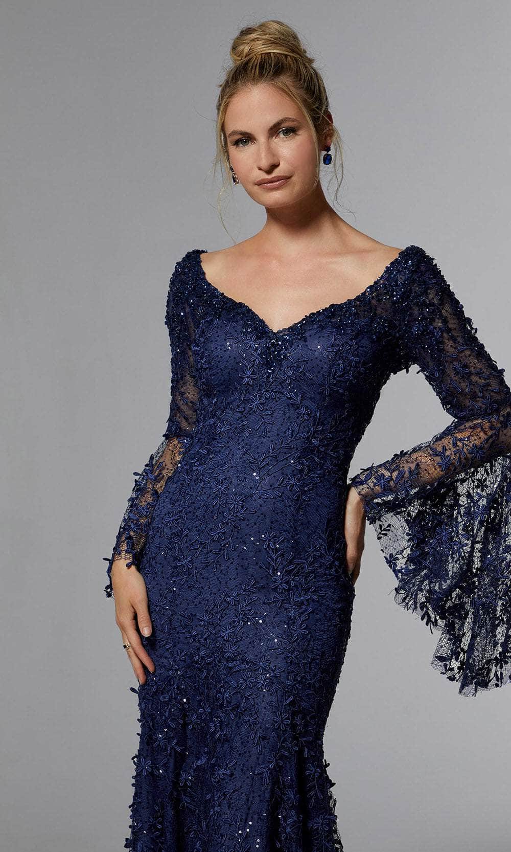 Elevate your red-carpet presence with the MGNY by Mori Lee 72930 creation, an embodiment of timeless elegance. This glamorous evening gown presents a luxurious layered look crafted from all-over lace adorned with intricate three-dimensional floral details. The sculpted neckline is thoughtfully designed with sparkling crystal beaded trim, leading to a sultry v-shaped back and dramatic sheer bell sleeves. The skirt gracefully unveils an mermaid design, concluding with a sweep train that adds a touch of sophistication to the ensemble. Make a statement and leave a lasting impression with this MGNY by Mori Lee 72930 gown, a choice that exudes refined glamour for your special occasion. Models are wearing the Latte and Navy colors.
