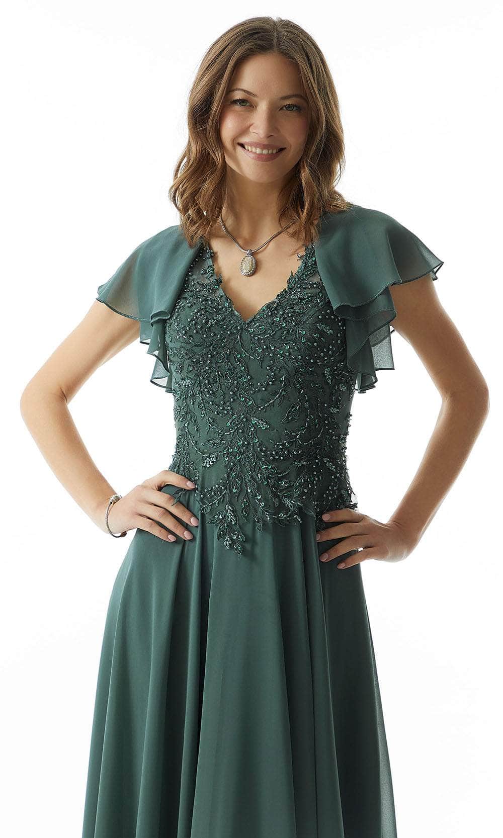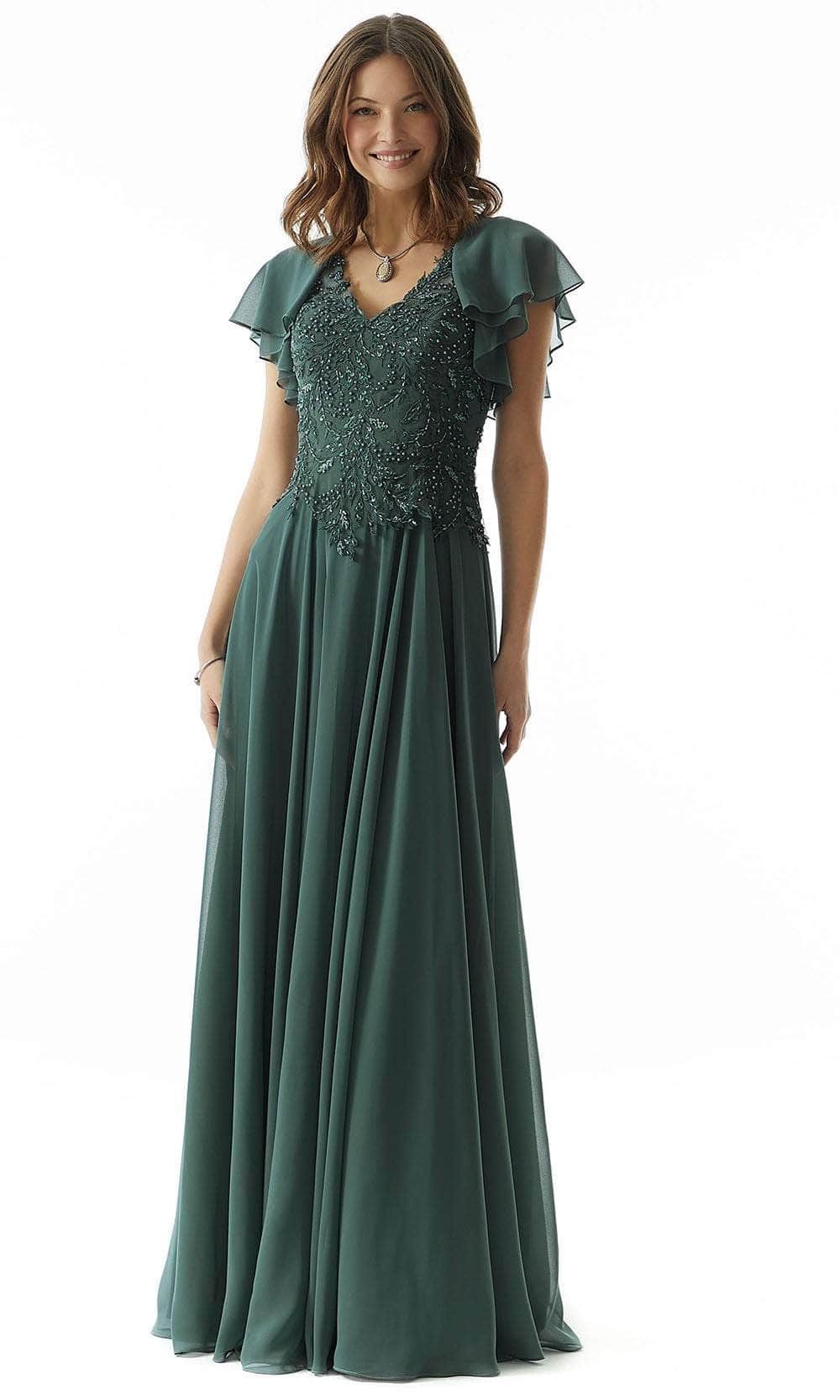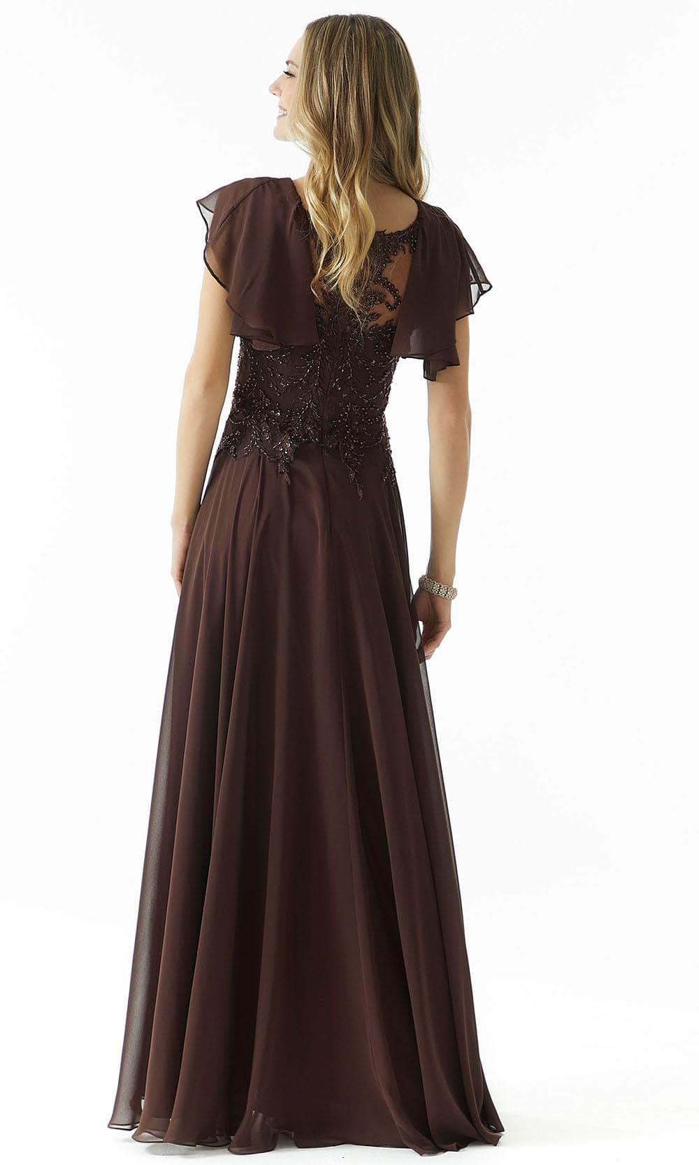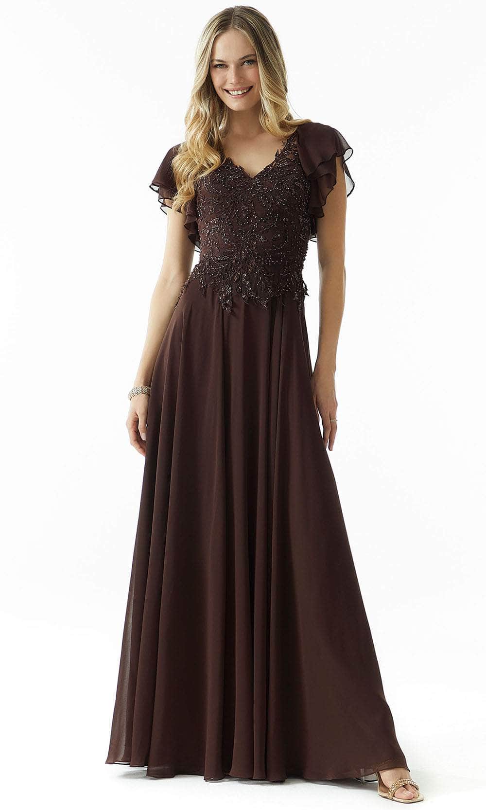 Embody ethereal grace with the MGNY by Mori Lee 73016 creation. This captivating gown crafted from lightweight chiffon floats effortlessly on the figure, its soft silhouette offering a touch of timeless elegance. The stunning v-neckline flatters the face and shoulders, while the bodice comes alive with elegant beaded embroidery that adds a touch of captivating shimmer. Delicate flutter sleeves add a touch of whimsical movement, complementing the sheer back detail that injects a hint of alluring intrigue. The MGNY by Mori Lee 73016 is crafted for the woman who desires a touch of romantic charm. Models are wearing the Chocolate and Spruce colors.