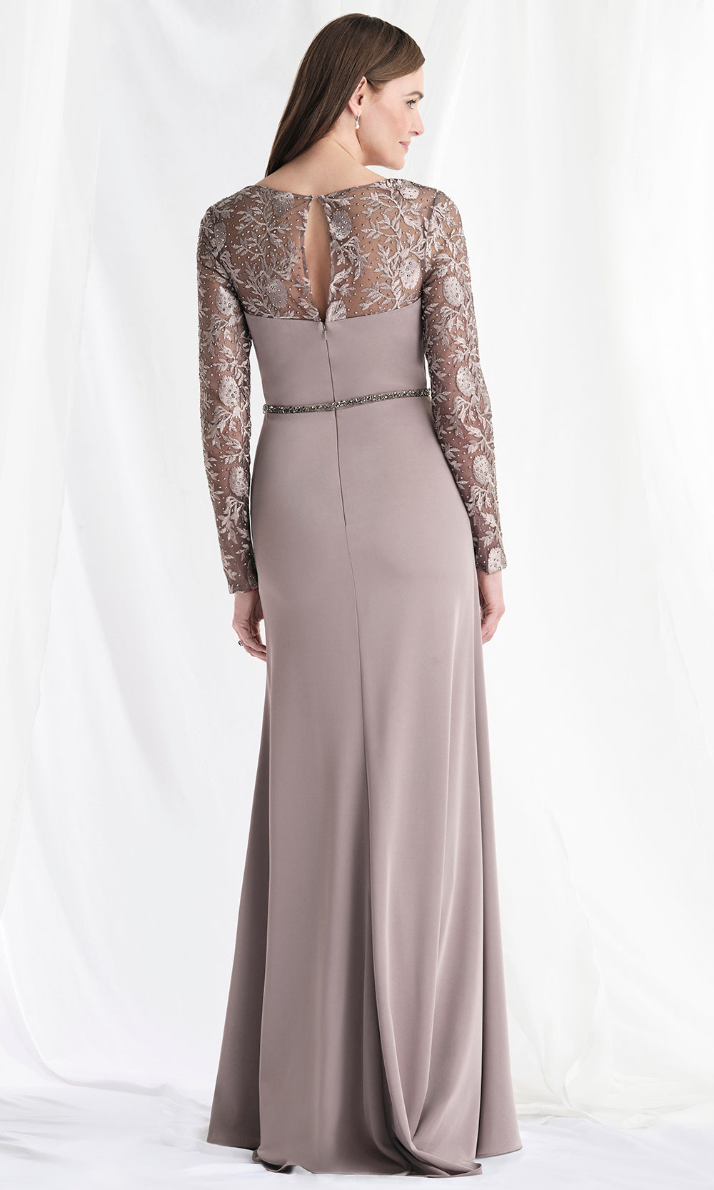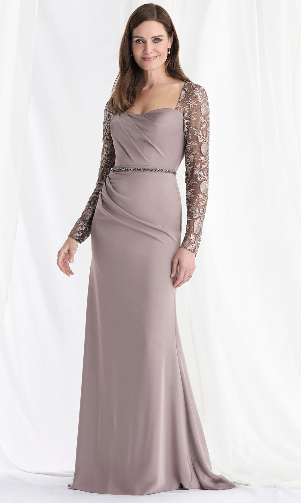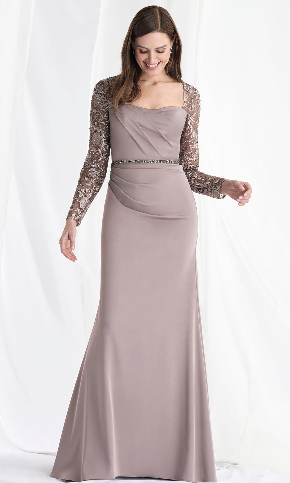 Thoughtfully composed with an eye for elegance, this MGNY By Mori Lee 73160 gown is a seamless expression of style and subtle glamour. This look balances delicate charm with defined shape, featuring a detachable beaded belt at the waist, a modified sweetheart neckline, and sheer long sleeves. A clean sheath silhouette flows into a lengthened finish for effortless movement. Embellished with embroidery and beading, this piece is made for the woman who appreciates balance, poise, and quiet sparkle. MGNY By Mori Lee 73160 is the perfect match for evenings that call for grace without excess. Model is wearing Mocha color.