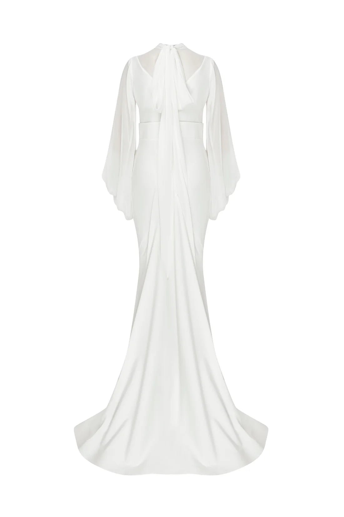 | Details: | Bishop Sleeves, Long sleeves, Mermaid lower cut, Sweep Train |