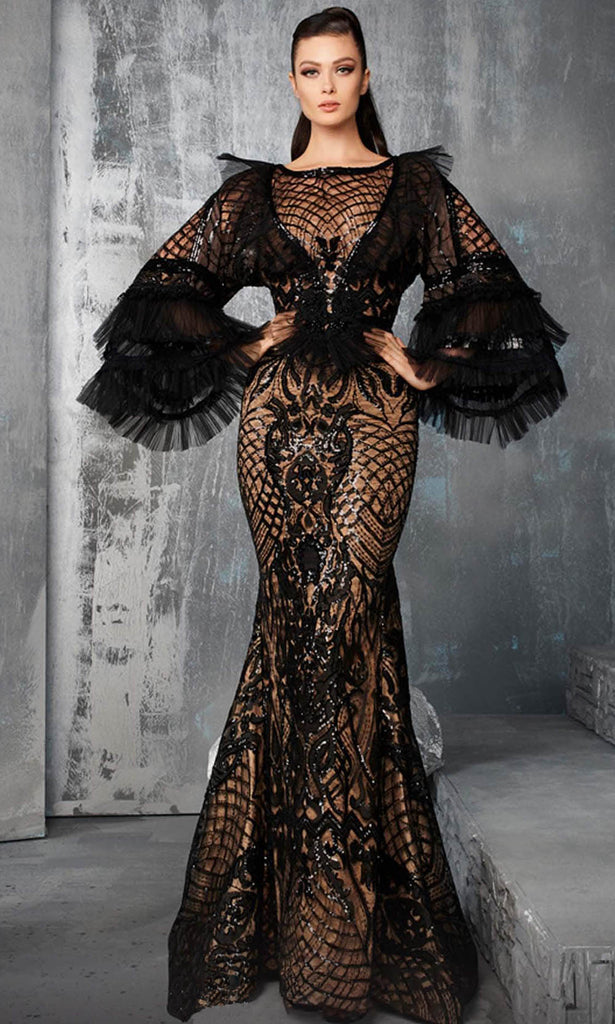 Get glamorous underneath the modern and classic detailing on the mermaid silhouette of MNM Couture 2653. This long dress has a unique feature with its bateau neck embellished with embroidered appliqué. The long bell sleeves is designed with dramatic ruffle, the full-back is secured with a center zipper closure. Be in this gorgeous MNM Couture creation and leave a lasting impression. Each of MNM Couture design offers cutting edge styles that will make every woman look sophisticated| Style: | mnm_2653 |