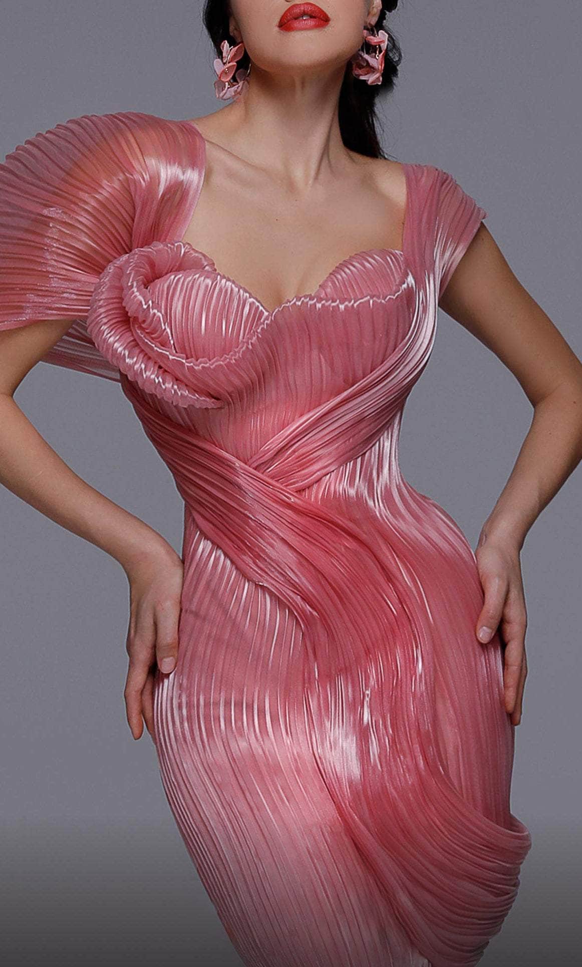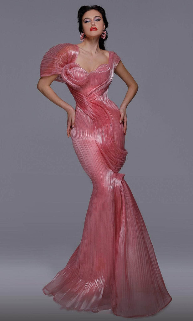 You are more than gorgeous when you wear this unbeatable gown from MNM Couture 2733. The fabric used for the making of this dress has a shiny, translucent effect that makes it almost unimaginable. Fashions a non-symmetrical shoulder straps and neckline. It enhances your body with its sculpted shape in mermaid silhouette. You are in dizzying beauty when you wear this wonderful creation. Turn into such an irresistible vision that captures everyones interest in this MNM Couture 2733 masterpiece. Model is wearing Pink color.