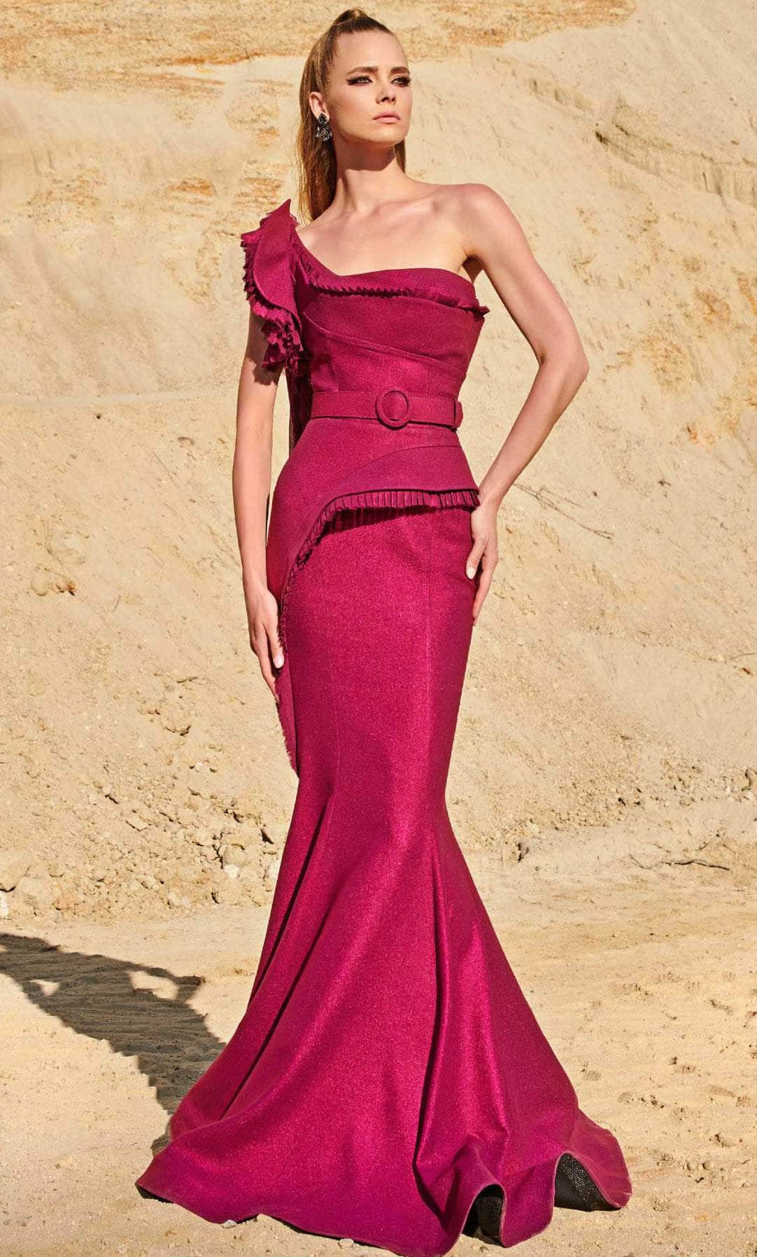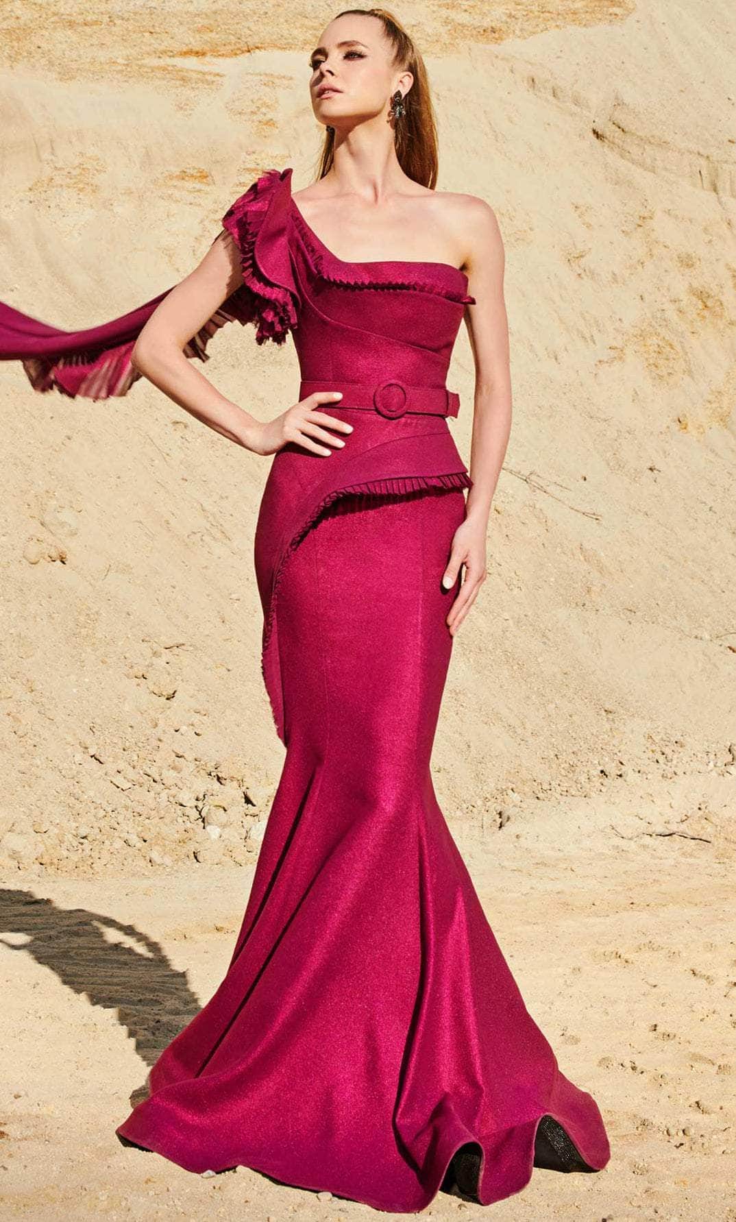 Capture that striking presence and get everyones attention in MNM Couture 2771. Stylish peplum dress that fashions an asymmetrical neckline and one shoulder strap design on a fitted bodice. Designed with some pleats that are noticeable around the bodice. Uses belt around the natural waist. Shoulder sash runs to the floor together with the sweep train romantic finish. This MNM Couture 2771 style is a sure standout on your next evening social event. Model is wearing Burgundy color.