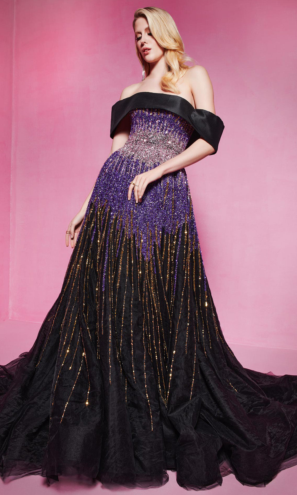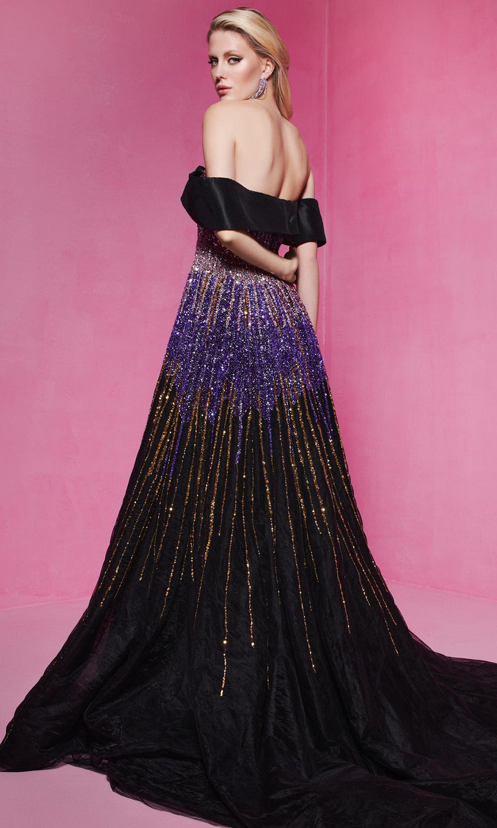 Experience the height of opulence in MNM Couture B1009, a gown crafted for unforgettable evenings. The off shoulder sleeves and straight-across neckline with fold-over design enhance your natural beauty, while shimmering sequin embellishments and tube bugle beads cascade down the silhouette, creating a breathtaking visual effect. The ballgown skirt sweeps gracefully, offering a combination of glamour and timeless elegance. Whether you are attending a gala or formal affair, MNM Couture B1009 ensures you captivate the room and leave an impression that lasts. Model is wearing Purple color.