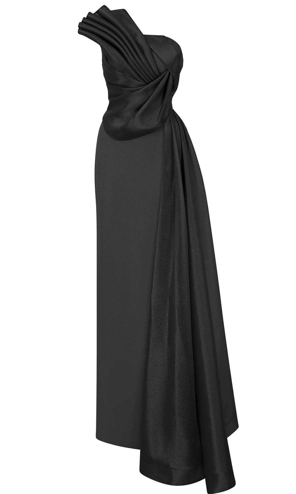 | Details: | One Shoulder, Strapless, Pleated Bodice, Draped Accent, High Slit |