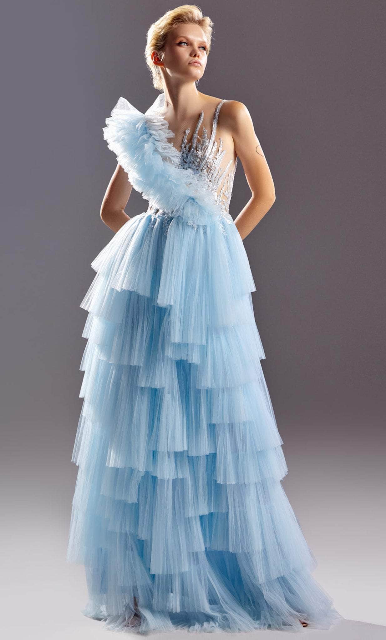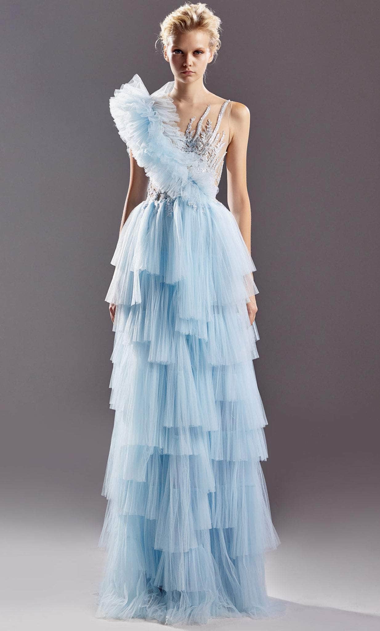 As you wear this gorgeous MNM COUTURE G1528, walk with confidence. This gown fascinates in a sleeveless style fitted illusion bodice, brilliantly designed with shimmering floral embroidered applique details while flaunting a full-length ruffle trim detailed skirt that parades in an A-line silhouette. The illusion back is secure with a concealed zipper closure. Wear a chic creation from MNM COUTURE G1528 to the special occasion and get ready to make a big fashion statement. Model is wearing Blue color.