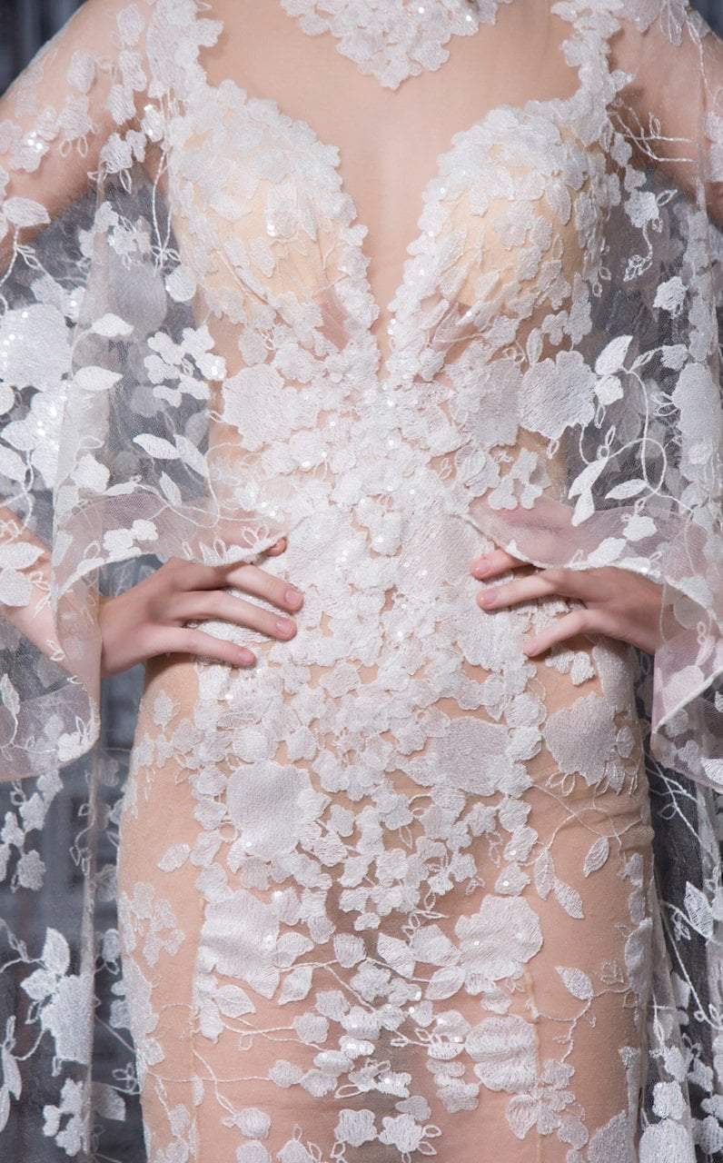 | Details: | Cape-like accent, Embroidery, Fitted bodice, Mermaid skirt, Sweep train, Back zipper |