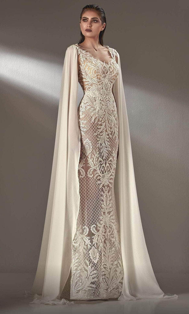 Feel divine in a heavenly gown from MNM Couture K3890. Make that dramatic entrance as you show up wearing this gown with shoulder sash that reaches the ground using chiffon fabric. Flaunting a fitted bodice made with intricate embroidery details from the neckline down to the hem. Back is cut in a V shape and is tailored into a sheath silhouette. Look impeccably polished as you sweep them off their feet in this dazzling MNM Couture K3890 masterpiece. Model is wearing Off White color.