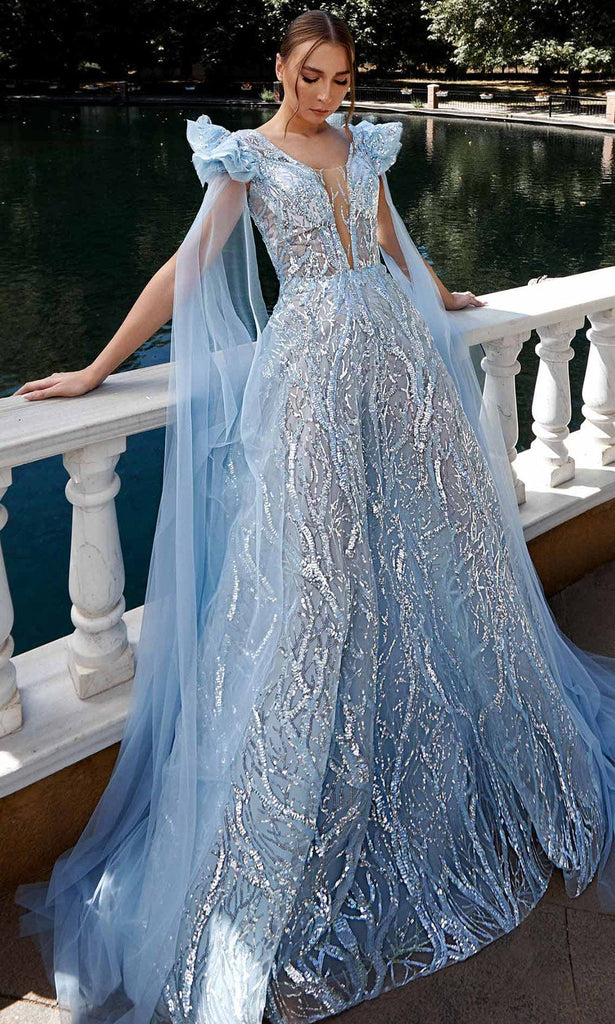 Amp up the visual appeal in this tantalizing MNM Couture K3930 creation. Adorned with iridescent beadwork trailing its fascinating length, this gown flaunts a plunging v-neckline with a sheer inset. Styled with flutter sleeves and a v-open back, trailing sashes flows from the shoulders. The A-line skirt flutters beautifully into a sweeping design. Fall for the iridescence of this MNM Couture masterpiece. Each of MNM Couture design offers cutting edge styles that will make every woman look sophisticated. Model is wearing the Blue color.| Style: | mnm_K3930 |