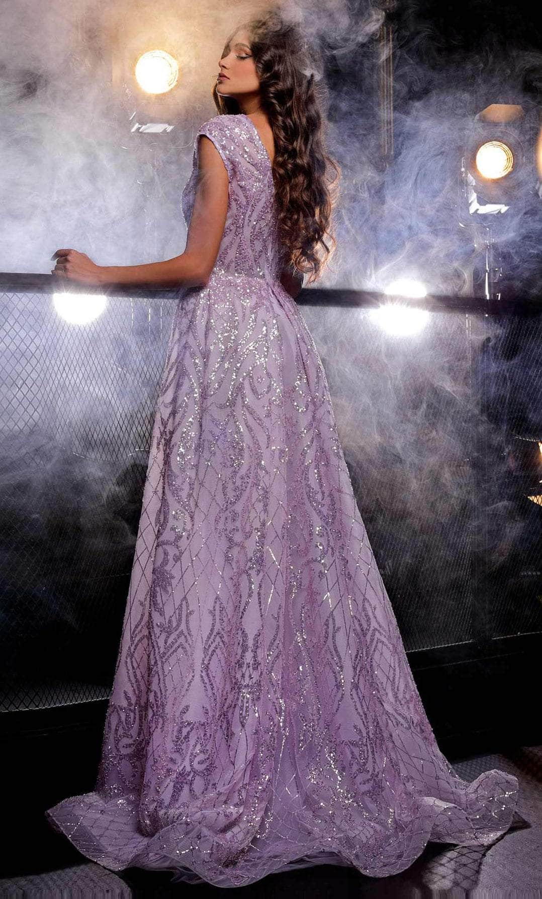 Turn yourself into a head-turning beauty by slipping into this absolutely eye-catching MNM Couture K3973 creation. Ornate with gleaming sequins and beads, this gown showcases a sleeveless bodice crowned with a plunging V neckline and a full-back with a center zipper closure. This gown also displays full-length skirt parades in a column silhouette. An overlay skirt has a horsehair trim and ends with a sweep train. This fabulous design by MNM Couture K3973 brings a striking look meant to turn heads. Model is wearing Purple color.