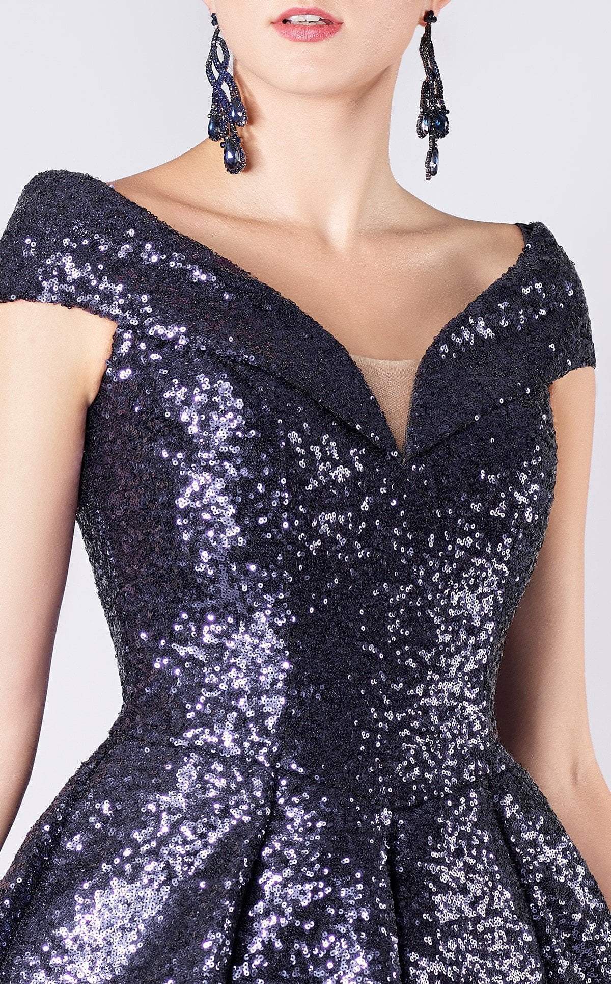 Make an extraordinary statement when you walk in this ultra fetching MNM Couture M0009 evening gown. This radiant allover sequin gown is for those who love to sparkle and shine! The top has flapped off the shoulder neckline with notch at the center concealed by a sheer mesh inset. The skirt is pleated with transforming ombre hue giving this gorgeous A-line silhouette a magical color illusion effect. Shine with the glow of ever after in this mesmerizingly stunning gown by MNM Couture. Model is searing the Navy/Fuchsia color.
