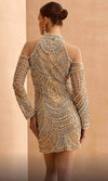 | Details: | Beaded, Sweetheart Lining, Illusion Cold Shoulder, Long Sleeves, Illusion Racerback, Concealed Zipper Closure, Short Hem |