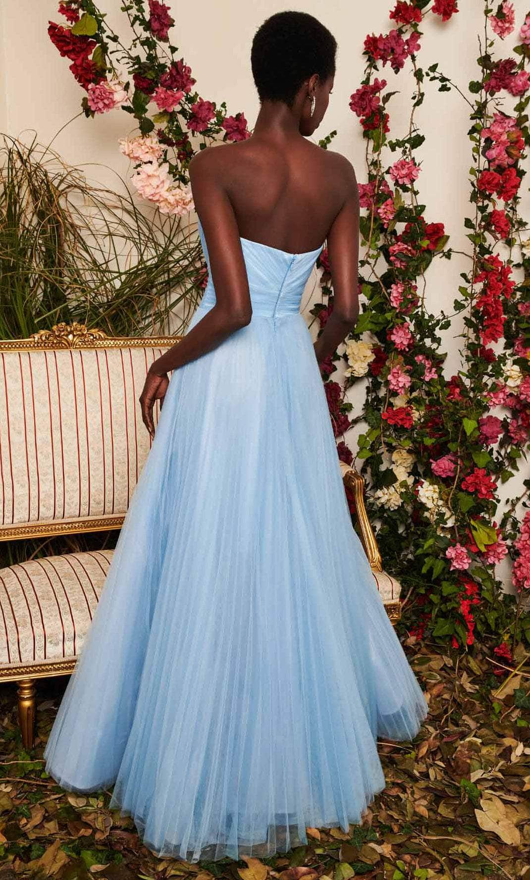 Take their breath away with this stunning full length gown in MNM Couture N0513. Highlight your natural beauty in an effervescent tulle gown, styled with thin pleats that fan out into a lush A line silhouette. The bodice shows off a strapless, asymmetrical neckline, while sashes of tulle wrap around the waist for an exquisite look. The back offers a simple and elegant straight cut style. Exhibit your softer side in this delightful evening gown by MNM Couture N0513 Model is wearing Ice Blue color.