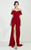| Details: | Strapless, Ruffled off the shoulder sleeves, Princess seams, Fitted bodice, Ruched sheath skirt, Thigh high slit, Sweep train |