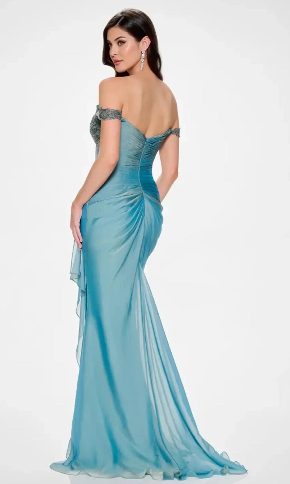 | Details: | Beaded, Embroidered Lace Appliques, Ruched, Detachable Off-The-Shoulder Straps, Separate Spaghetti Straps, Shawl Included |