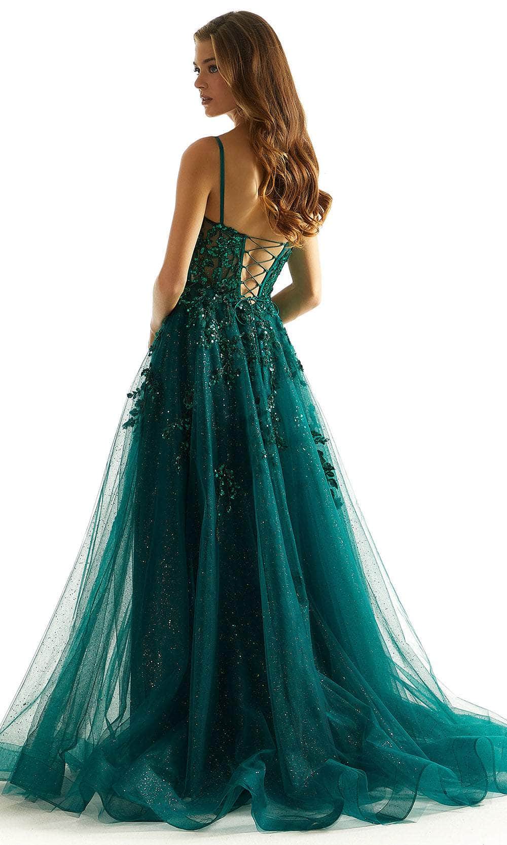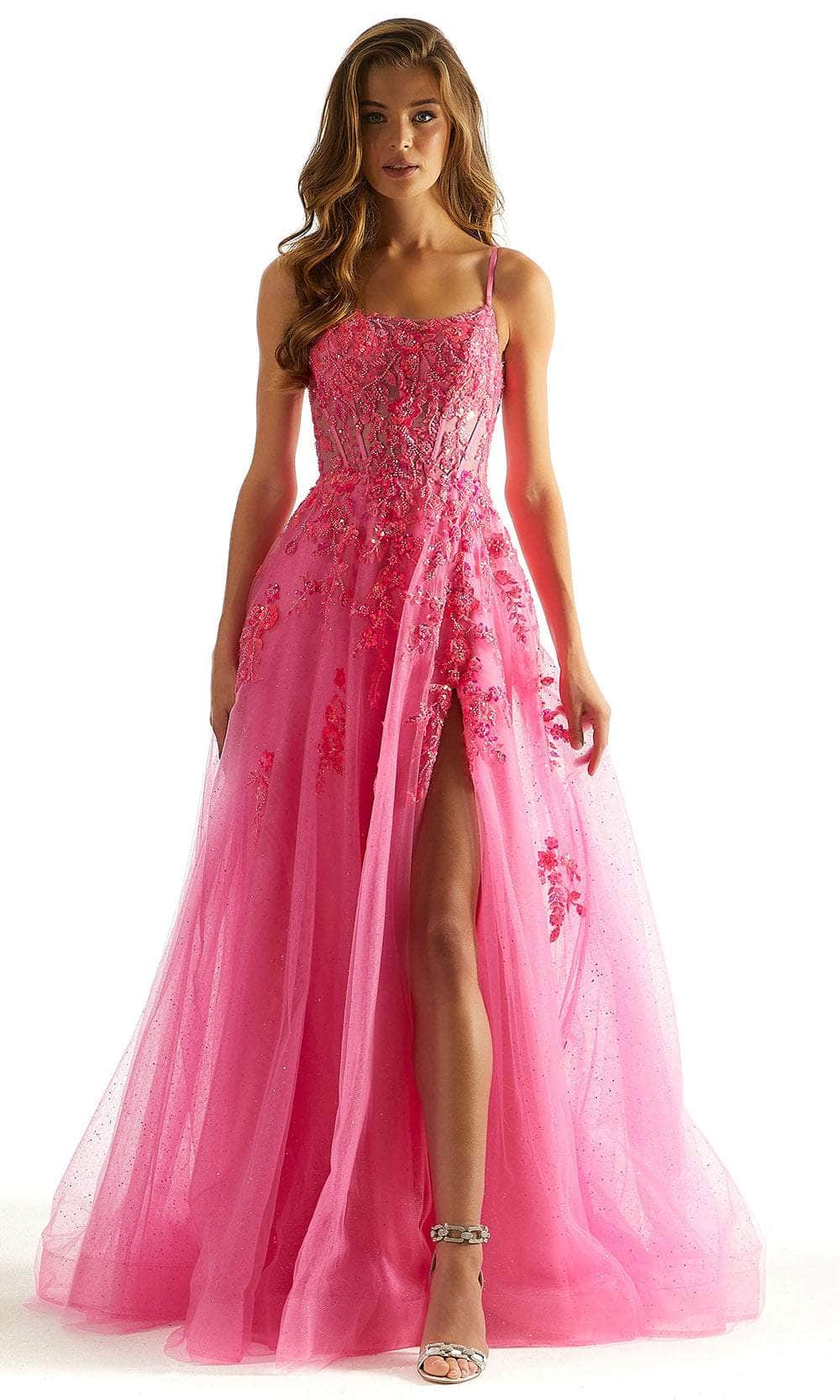 Step onto the red carpet in style with the enchanting Mori Lee 49023 prom dress. Embrace your beauty in this gown adorned with a charming scoop neckline, delicately supported by spaghetti straps. The illusion top boasts a sheer corset-style design, exuding allure. The mid-open back, elegantly secured with lace, adds a touch of sophistication. An alluring high slit on the A-line skirt gracefully cascades to floor length, accompanied by a majestic sweep train. Prepare to capture awe and admiration in this magnificent Mori Lee 49023 masterpiece. Models are wearing Neon Pink, and Emerald colors.