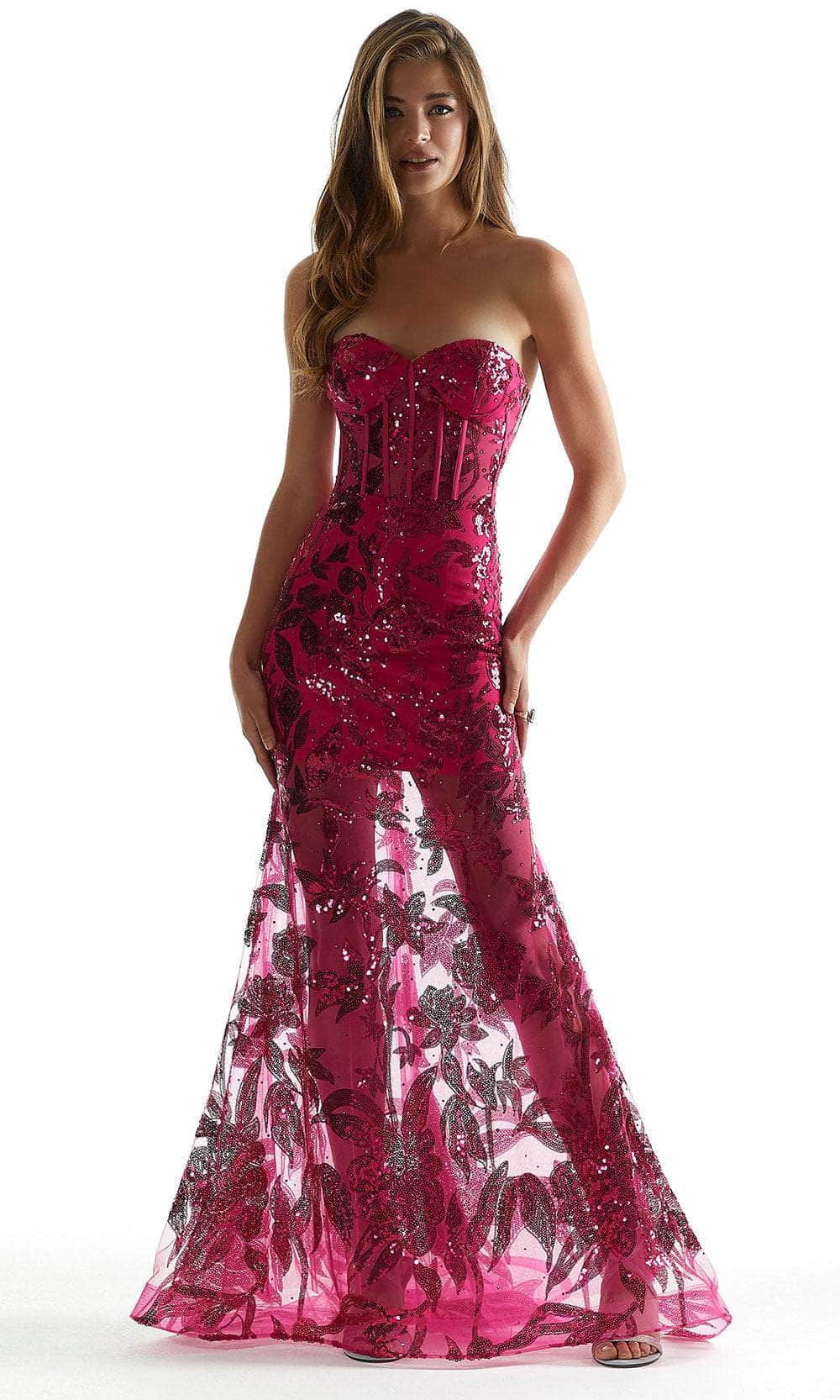Make a dramatic impression in the Mori Lee 49032, a prom gown designed for bold sophistication. Featuring a strapless sweetheart neckline, this sequin-covered piece hugs the body with a corset-style bodice and mid-open back. The illusion mermaid skirt glimmers as it cascades into a sweep train, creating movement with every step. This gown ensures you’ll stand out from the crowd. Shine bright and unforgettable in the Mori Lee 49032, a perfect choice for glamorous evenings.