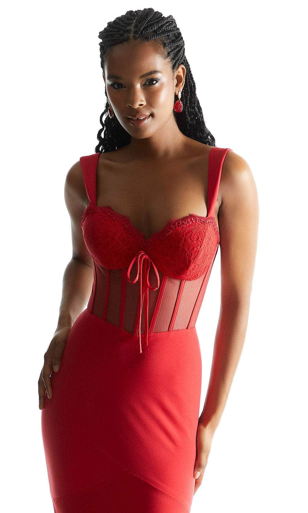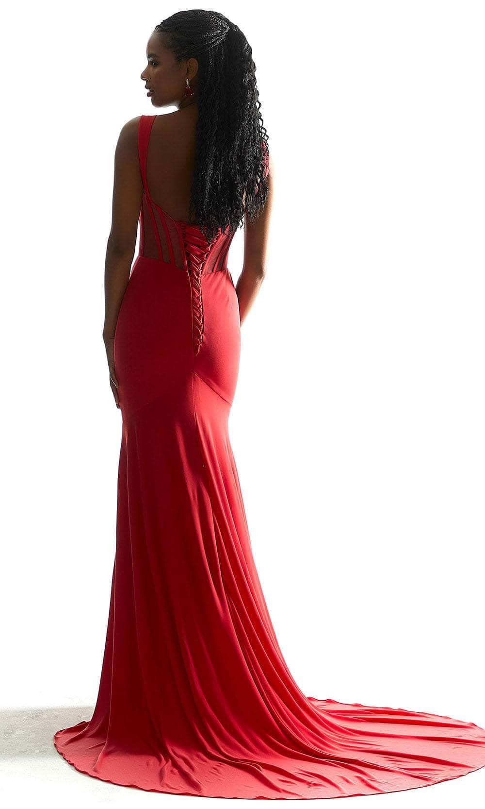 Take their breath away with this stunning Mori Lee 49061 prom dress. Everyone will be in awe once they see you wearing this alluring creation, showcasing a delightful sweetheart neckline on a fitted and sleeveless bodice. Aside from that, the top has a sheer midriff with corset boning details. It also displays thick straps to support the dress. Additionally, the back is mid-open style and is enclosed by a lace. Meanwhile, a sweep train is exhibited on the elegant floor-length sheath skirt. Experience the outstanding effect in this Mori Lee 49061 masterpiece! Models are wearing Powder Pink, Black, and Red colors.