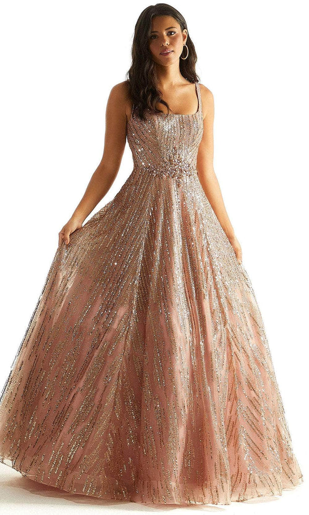 Dominate this luxurious event as you saunter into the ballroom with sass and allure in this Mori Lee 49065 prom dress. This sequin dress displays a classy square neckline, supported by thick straps, on a sleeveless bodice. Crystal beading is highlighted in the natural waist, while the back is in square-style, enclosed by a zipper. The glittery skirt exhibits an A-line silhouette, also displaying a fabulous court train which graces down to the floor length. Be fabulous and get ready for everyone to stop and stare when you show up in this in this Mori Lee 49065 creation! Models are wearing Rose Gold, and Gunmetal colors.