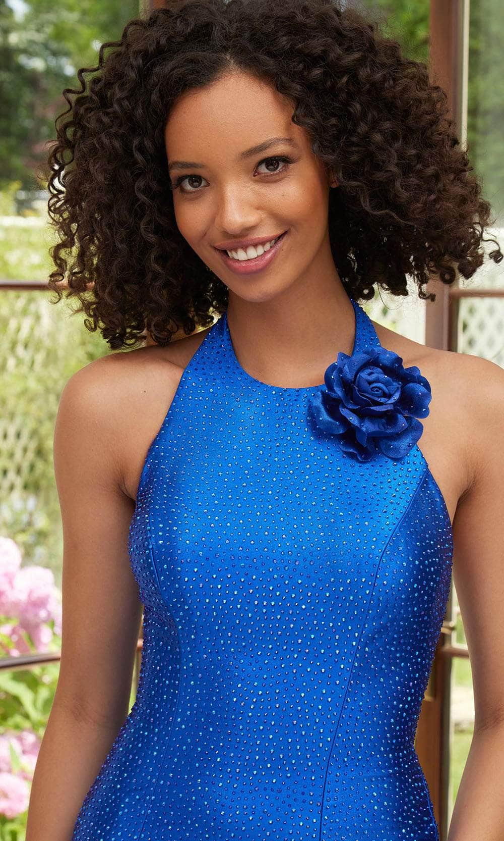 Step into the spotlight with the Mori Lee 49113 prom gown, designed for today’s modern prom queen. This sophisticated dress is expertly tailored with sleek lines and luxurious lining for a perfect fit. The halter neckline features a standout three-dimensional rosette, while the open back boasts a chic lace-up corset. Crafted from gleaming jersey fabric, the gown shimmers with intricate beadwork, radiating elegance. The fitted sheath silhouette accentuates your curves, enhanced by a bold slit in the skirt for an alluring touch. Ideal for turning heads at any special event, the Mori Lee 49113 gown redefines prom night glamour with contemporary flair. Models are wearing the Lilac and Royal colors.