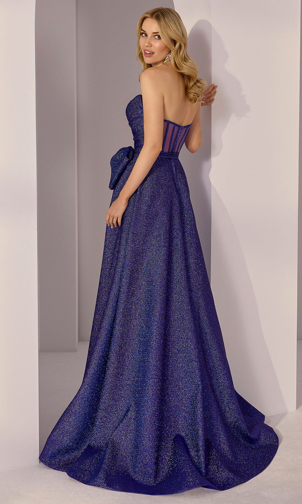Making a striking entrance feels effortless when stepping out in Mori Lee 49204, a gown that blends dramatic presence with refined elegance. The strapless cowl neckline frames the upper body beautifully, while the draped bodice adds depth and visual interest. A statement bow detail at the waist draws focus and creates a flattering focal point before flowing into a full A-line skirt. The thigh slit introduces a confident edge without overwhelming the silhouette. Complete an unforgettable prom look with Mori Lee 49204, created for moments that deserve attention. Models are wearing Wine, Blush, and Royple colors.