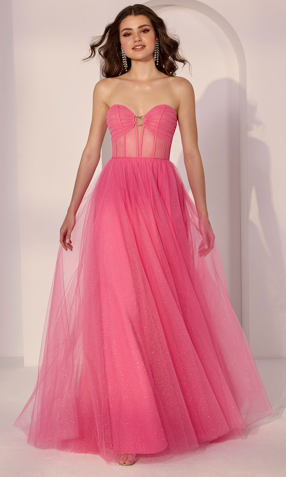 Confidence and romance merge beautifully in a gown that immediately captures attention, with Mori Lee 49211 presenting a refined silhouette that feels both powerful and graceful. The bodice showcases visible structure that enhances shape and support, while the sweetheart neckline and standout chrome heart accent frames the upper body with elegance. The waistline defines the figure before flowing into a full A-line skirt that moves effortlessly. This gown is ideal for prom evenings where presence matters. Step into timeless glamour and undeniable confidence with Mori Lee 49211. Models are wearing American Beauty Pink, and Emerald colors.