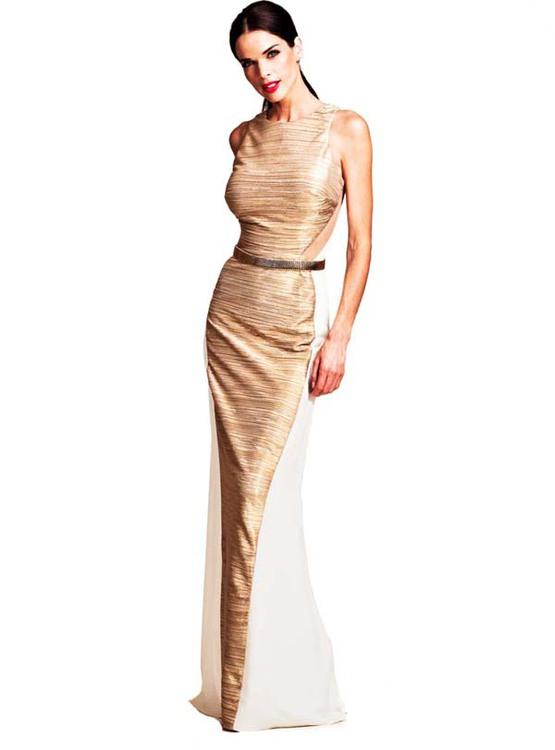 Nicole Bakti - 6558 Dress in Ivory and Gold