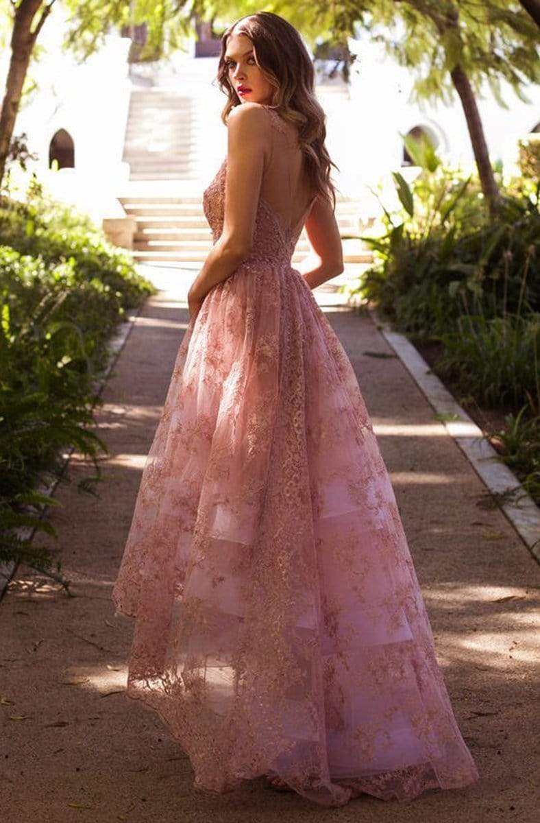 Make it a night to remember with this romantic and playful piece from Nicole Bakti 6774. This allover lace overlay gown features a sleeveless sweetheart neckline while the back shows an illusion V shape. Cinched at the natural waist, the dress displays a cascading high low A-line skirt. Feminine, youthful and chic, this Nicole Bakti will definitely make you shine! Model is wearing Dusty rose color.