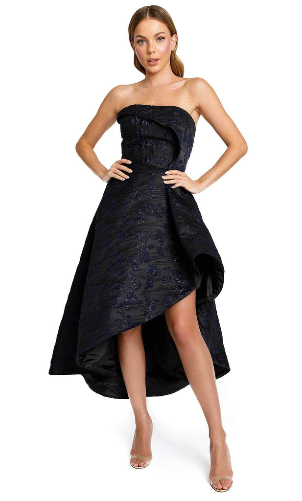Look fresh and pretty in this dress by Nicole Bakti 6782. This gown is crafted using jacquard fabric and has visible embossed details on the fabric. Straight neckline presented with a strapless design and the silhouette is a voluminous A-line shape in asymmetrical hem for an added style. This is perfect for semi-formal to formal events with its tea length size. This Nicole Bakti 6782 style is a sure standout on your next evening social event. Model is wearing Black color.