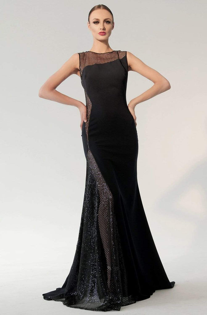 Brave the evening with temptress beauty and grace wearing this captivating Nicole Bakti 6790 masterpiece. The fitted bodice showcases an illusion bateau neckline and asymmetric lining. Sequin lattice panels design the neckline and sides which trails down to the full length mermaid skirt. The night is yours in a spectacular gown from Nicole Bakti design. Model is wearing Black color.