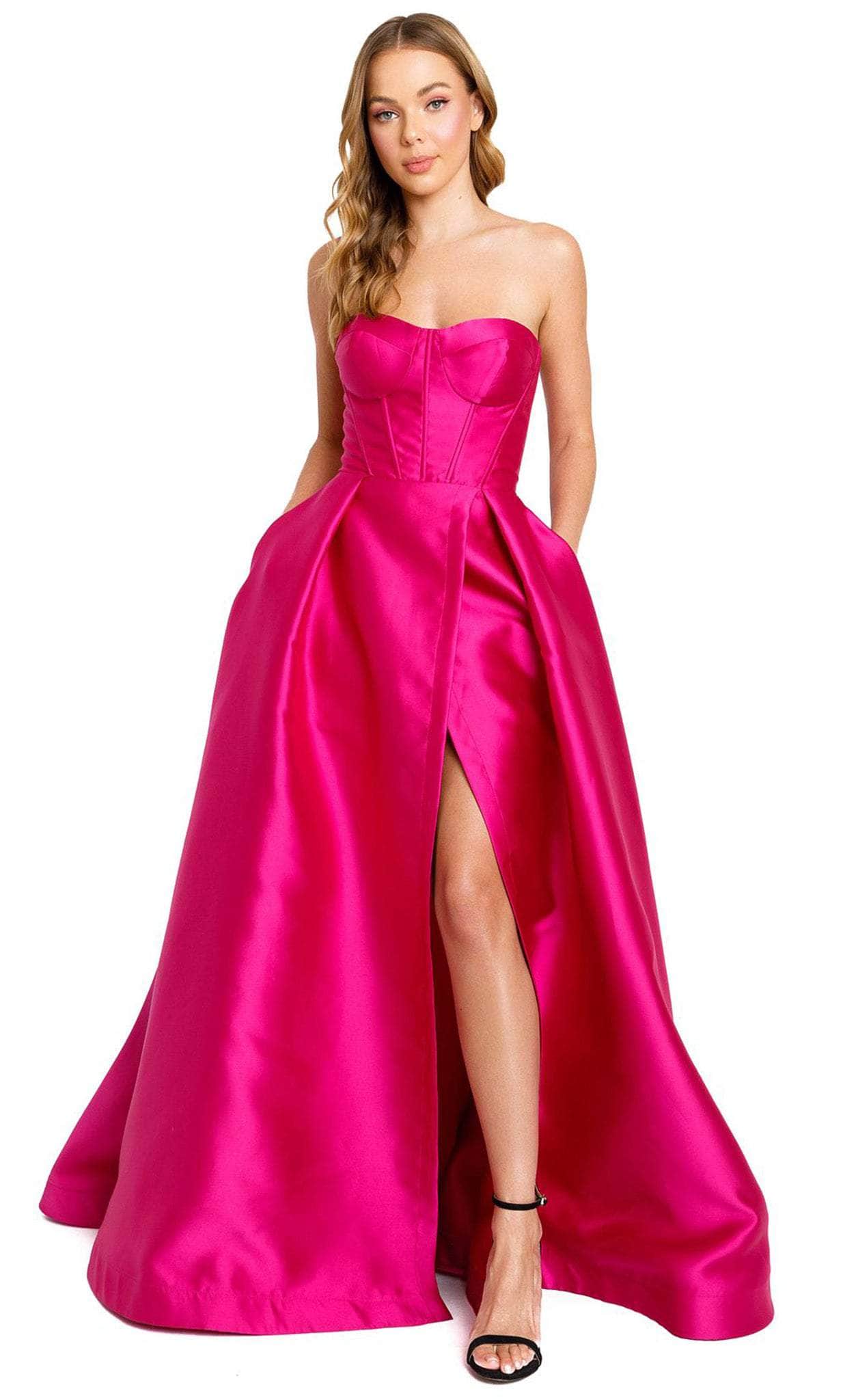 | Details: | Strapless, Corset Bodice, Slit, Horsehair Hem |