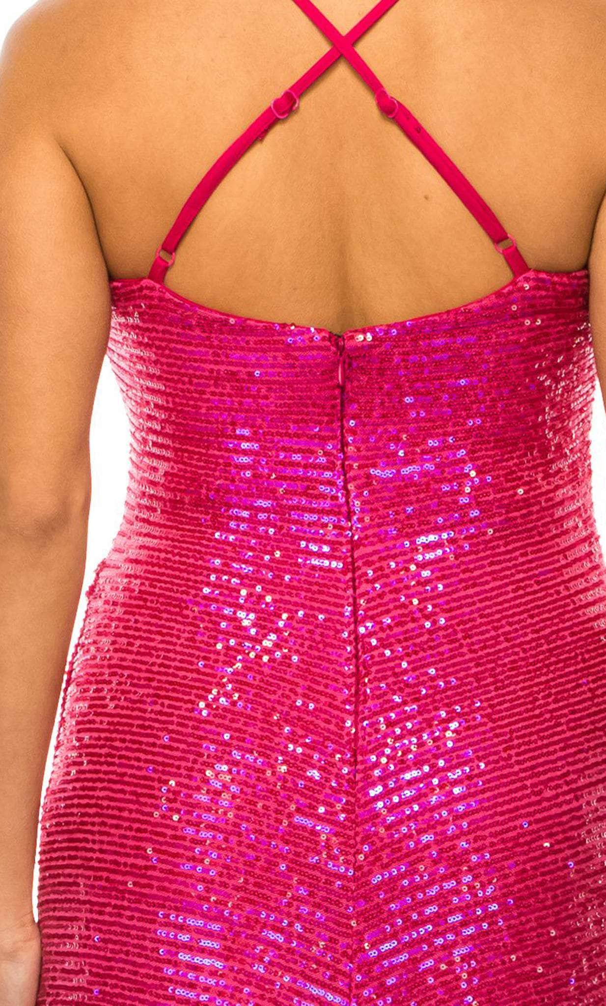 Details: Sleeveless, Adjustable Thin Straps, Sequin, High Slit, Crisscross Mid-Open Back, Hidden Back Zipper