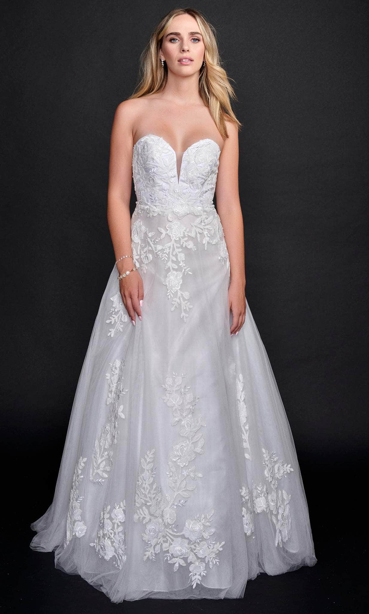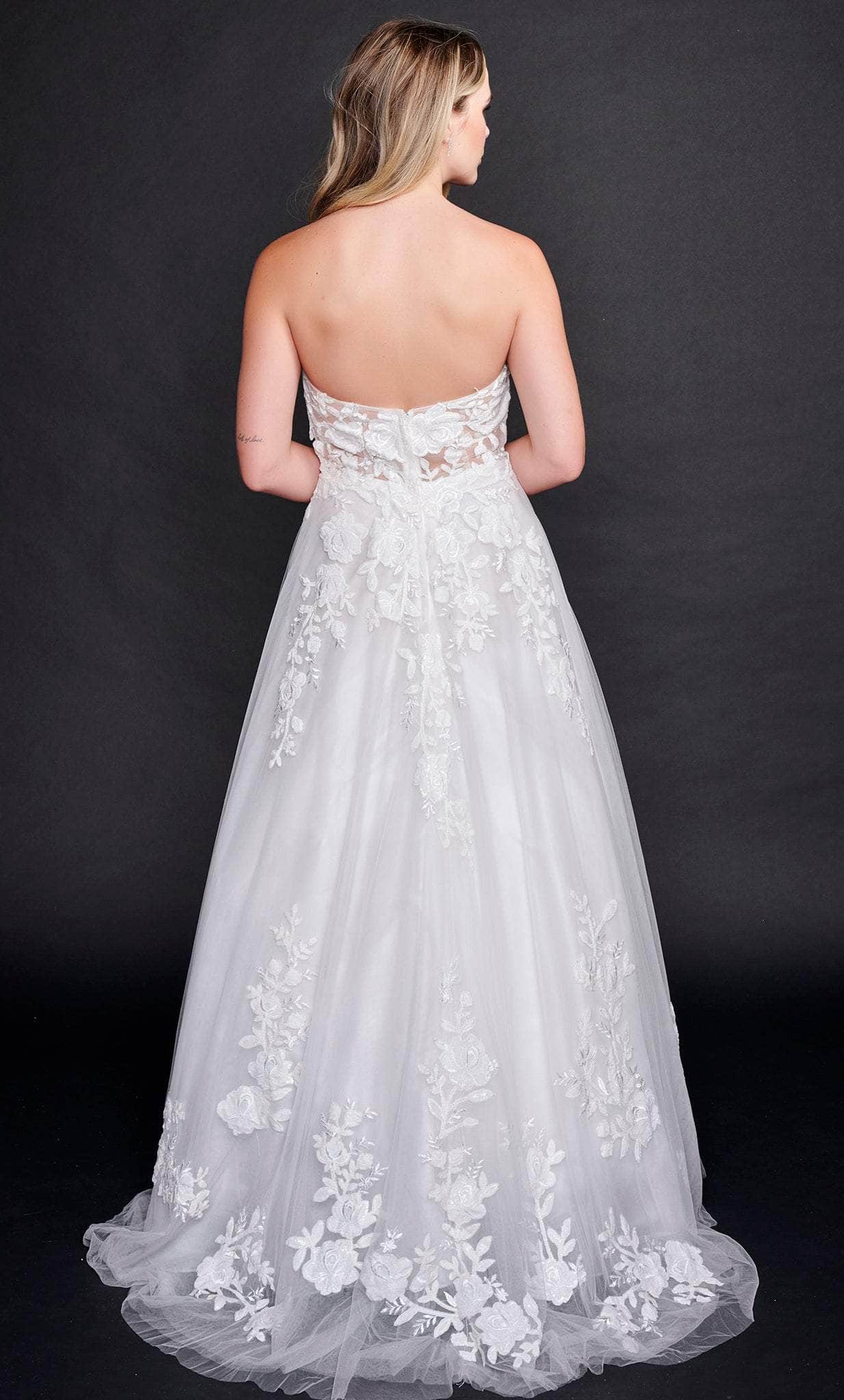| Details: | Strapless, Sheer Inset, Floral 3D Embroideries, Back Zipper Closure, Train |