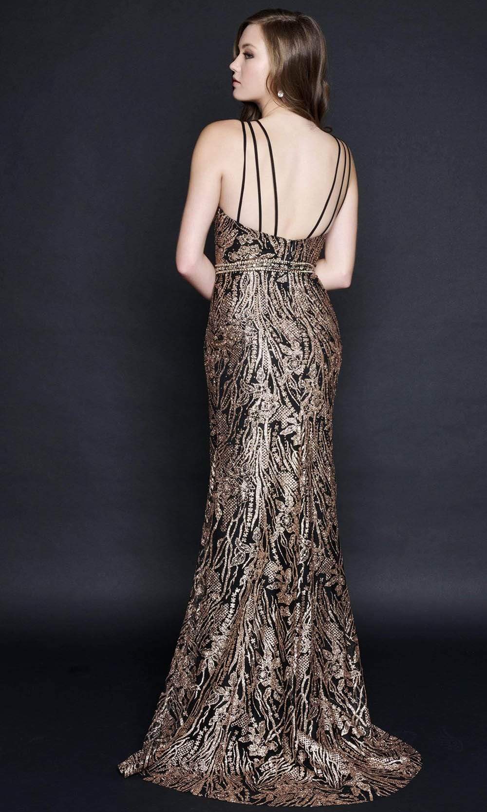 Optimize the attraction of your special event in this alluring gown by Nina Canacci 8203. Glamorously festooned with shimmering sequins and beads on its entire fitted silhouette, this gown showcases a sleeveless, plunging V neckline with a sheer inset at the bust. Stringed from triple spaghetti straps that lend support to the top as it leads to the low open back. The sheath skirt blends perfectly elongate as it gorgeously finishes with a sweep train. Get noticed in this radiant creation from Nina Canacci.